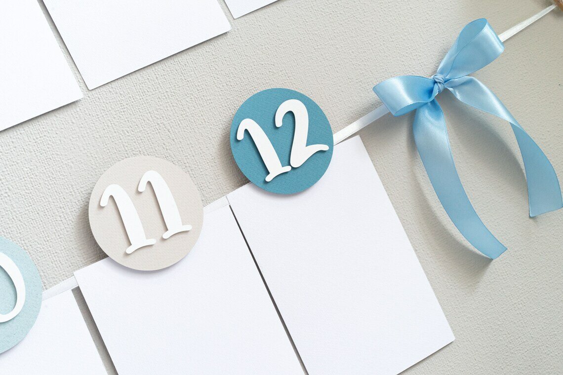Растяжка гирлянда для фото по месяцам на годик нежно голубая для сына интересное: