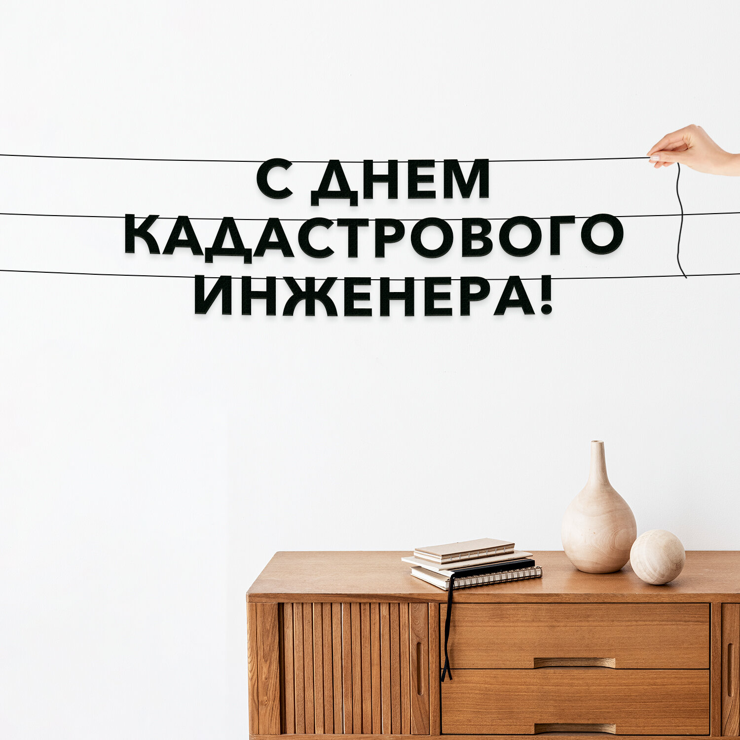 Купить Надпись на стену, праздничная - “С днем кадастрового инженера“, черная текстовая растяжка.