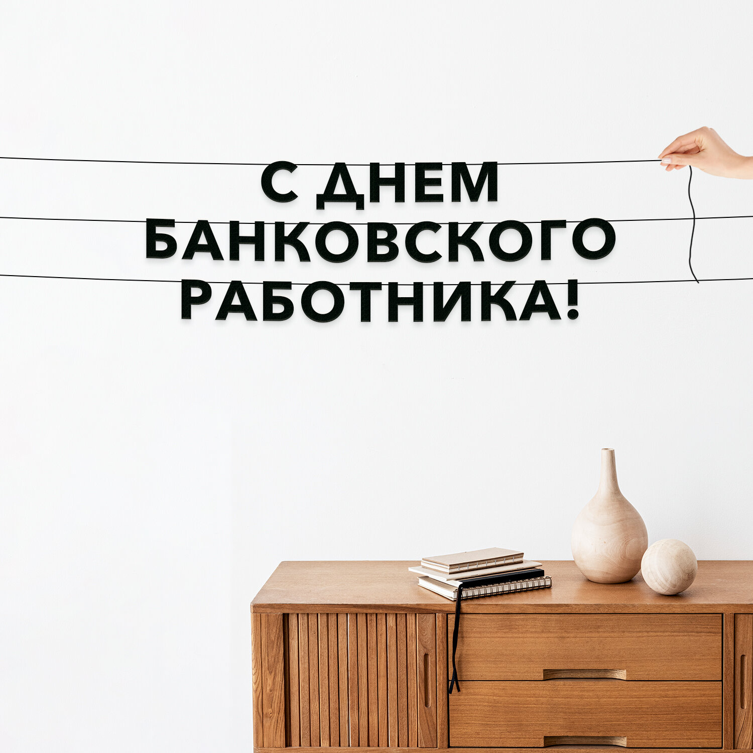 Буквы декоративные, праздничная - “С днем инфобизнесмена“, черная текстовая растяжка.