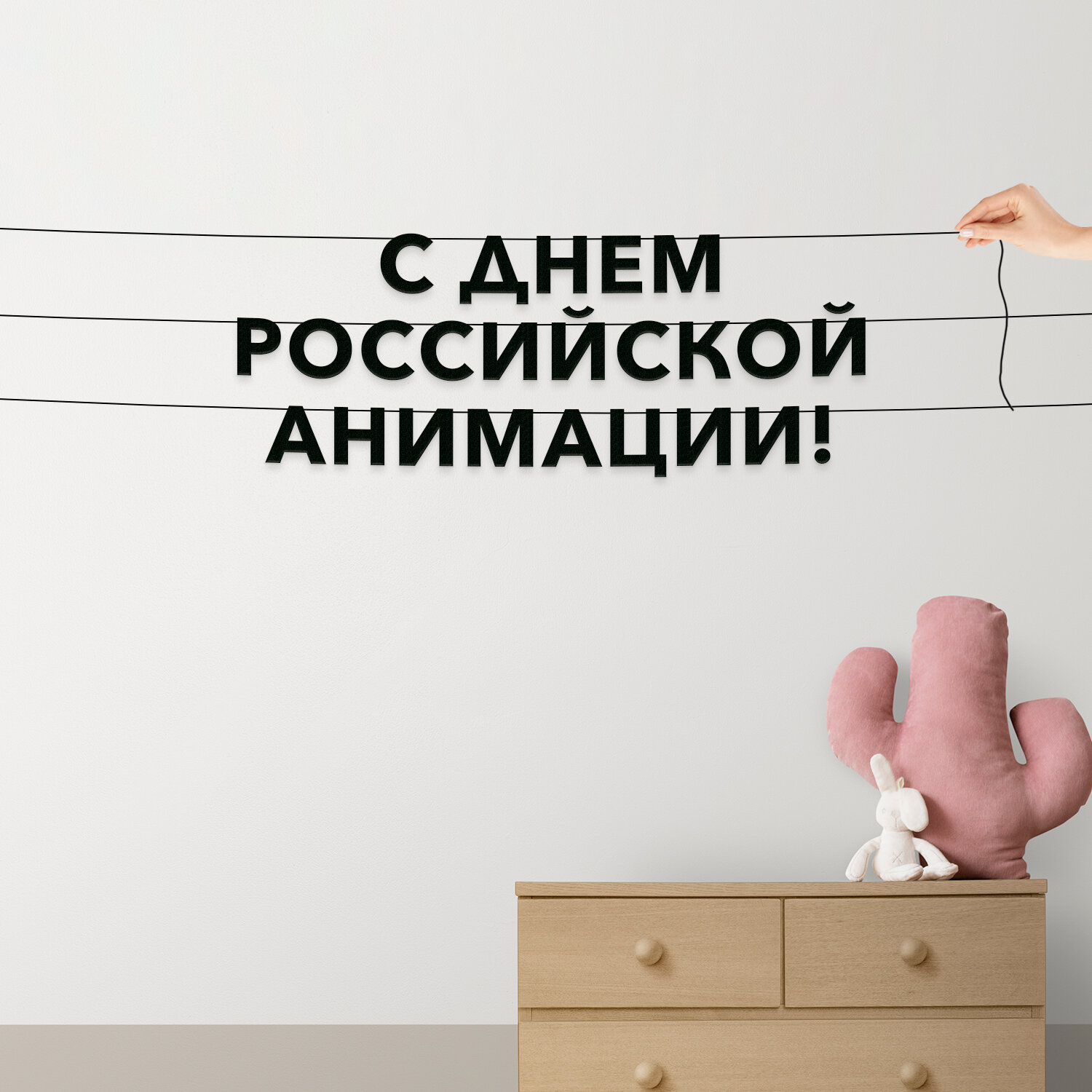 СохранитьГирлянда надпись, праздничная - “С днем российской анимации“, черная текстовая растяжка. интересное: