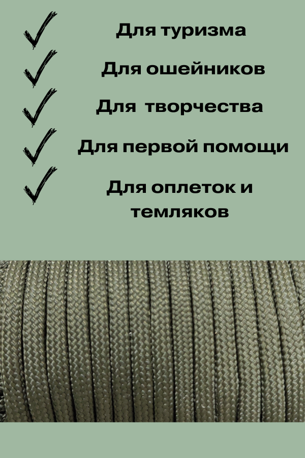 Паракорд, 4 мм, 7 жил 10 м/ Оттяжка, шнур, веревка, паракорд для палатки (зеленый) интересное: