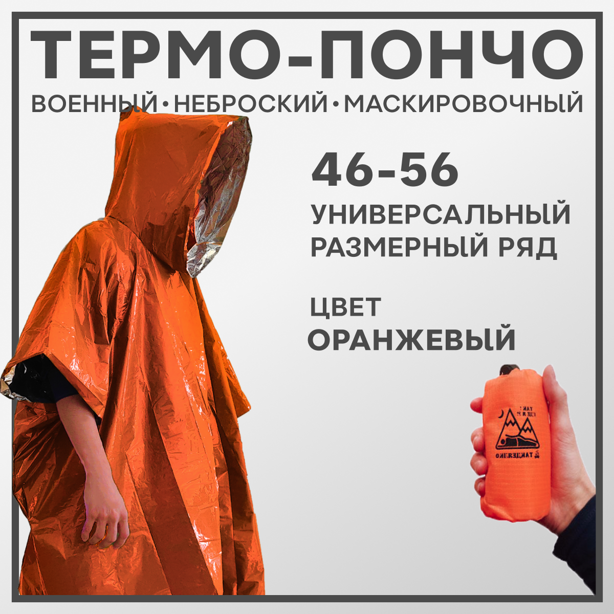 Термо пончо ТакДеялко, защитное, универсальное, специальное, изотермическое, спасательное, с защитой от тепловизора, оранжевое