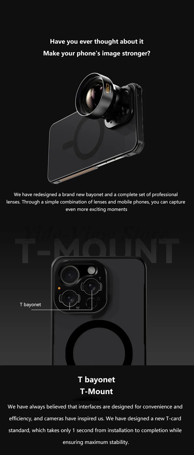 Широкоугольный макрообъектив-линза для телефона 2 в 1, 0.45Х, 37 мм, черный