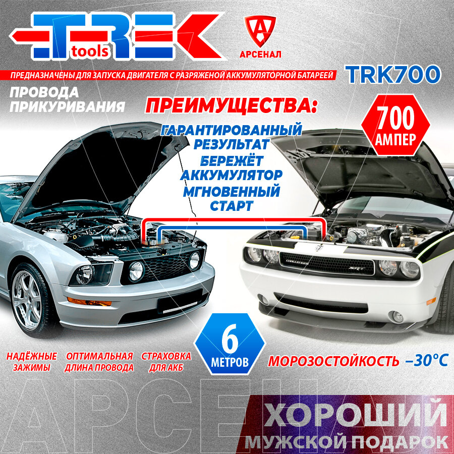 Провода прикуривания 700А, длина 6м. с зажимами (в сумке) TREK, TRK700 интересное: