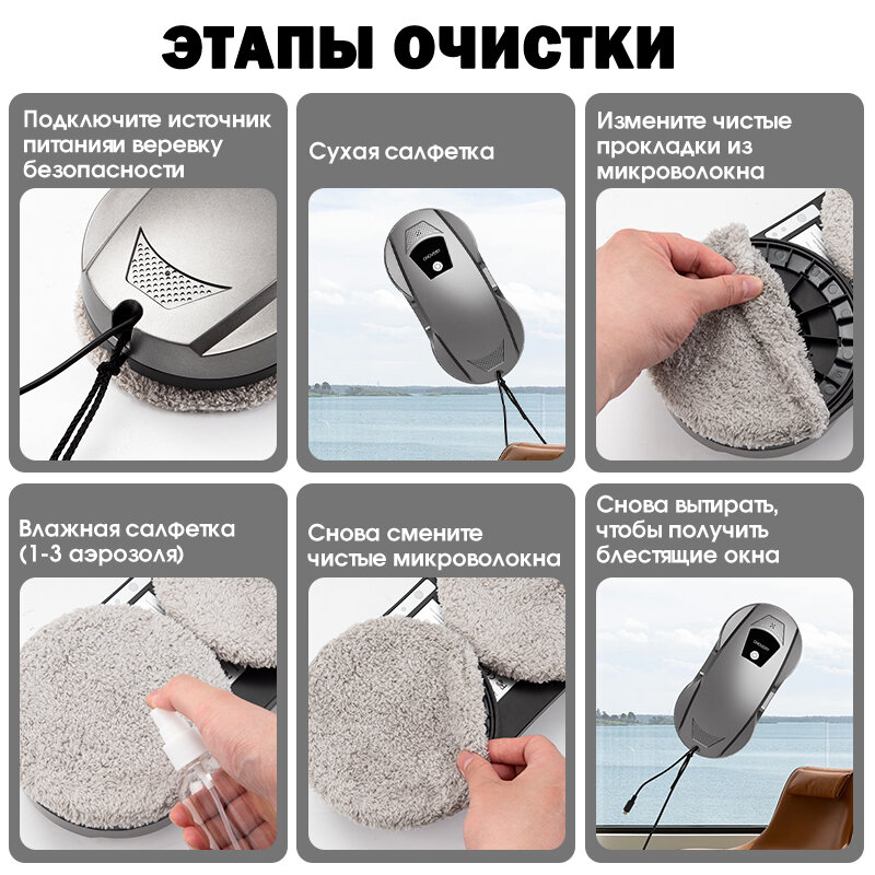 Робот-стеклоочиститель CHOVERY CL-4 Робот мойщик окон, Металлическая зола интересное: