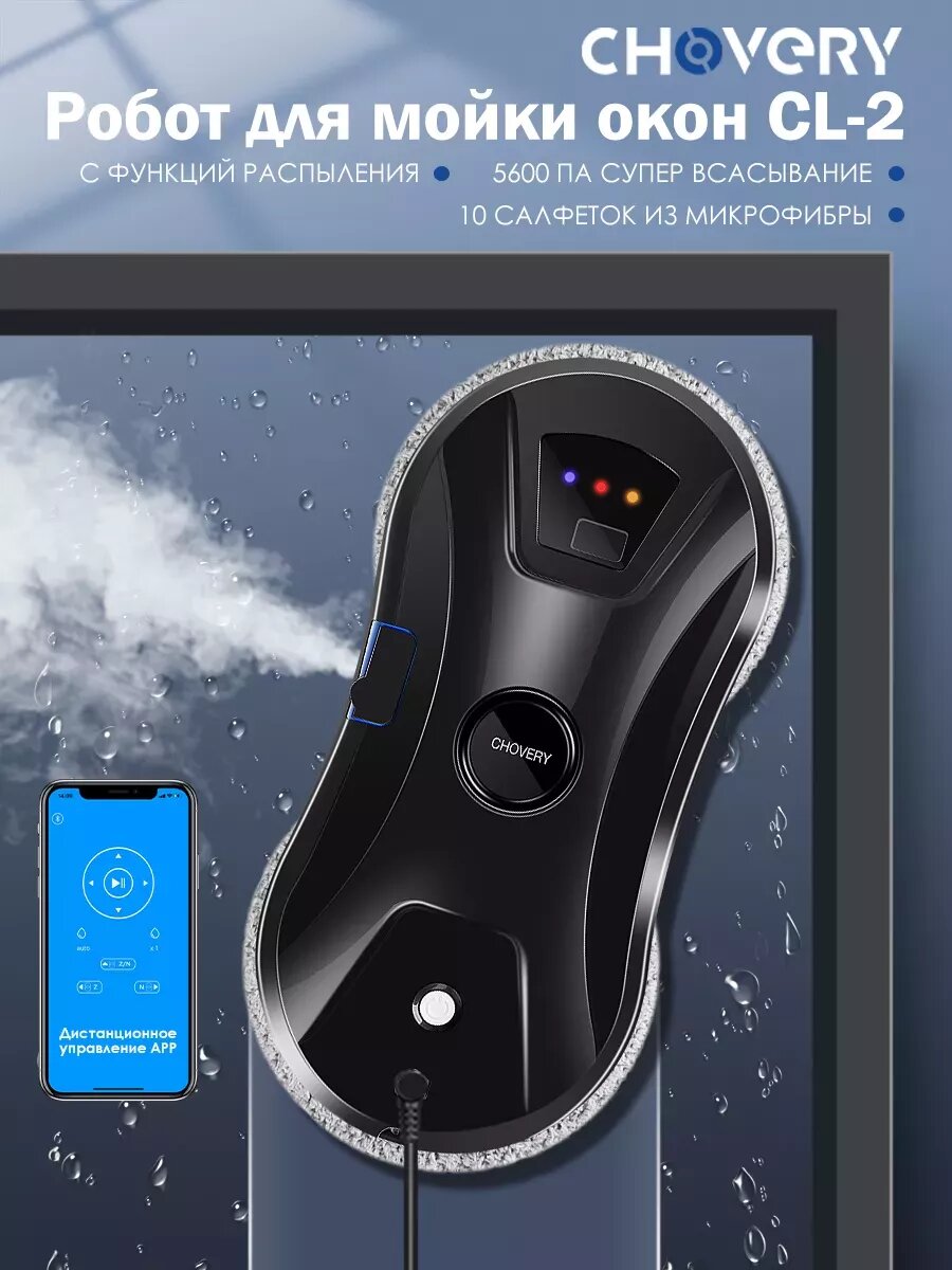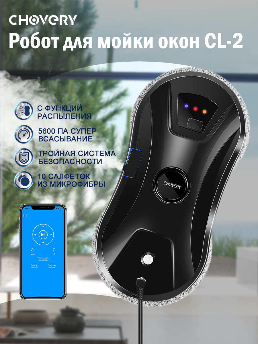 Робот-стеклоочиститель CHOVERY CL-2 робот мойщик окон, Чёрный интересное: