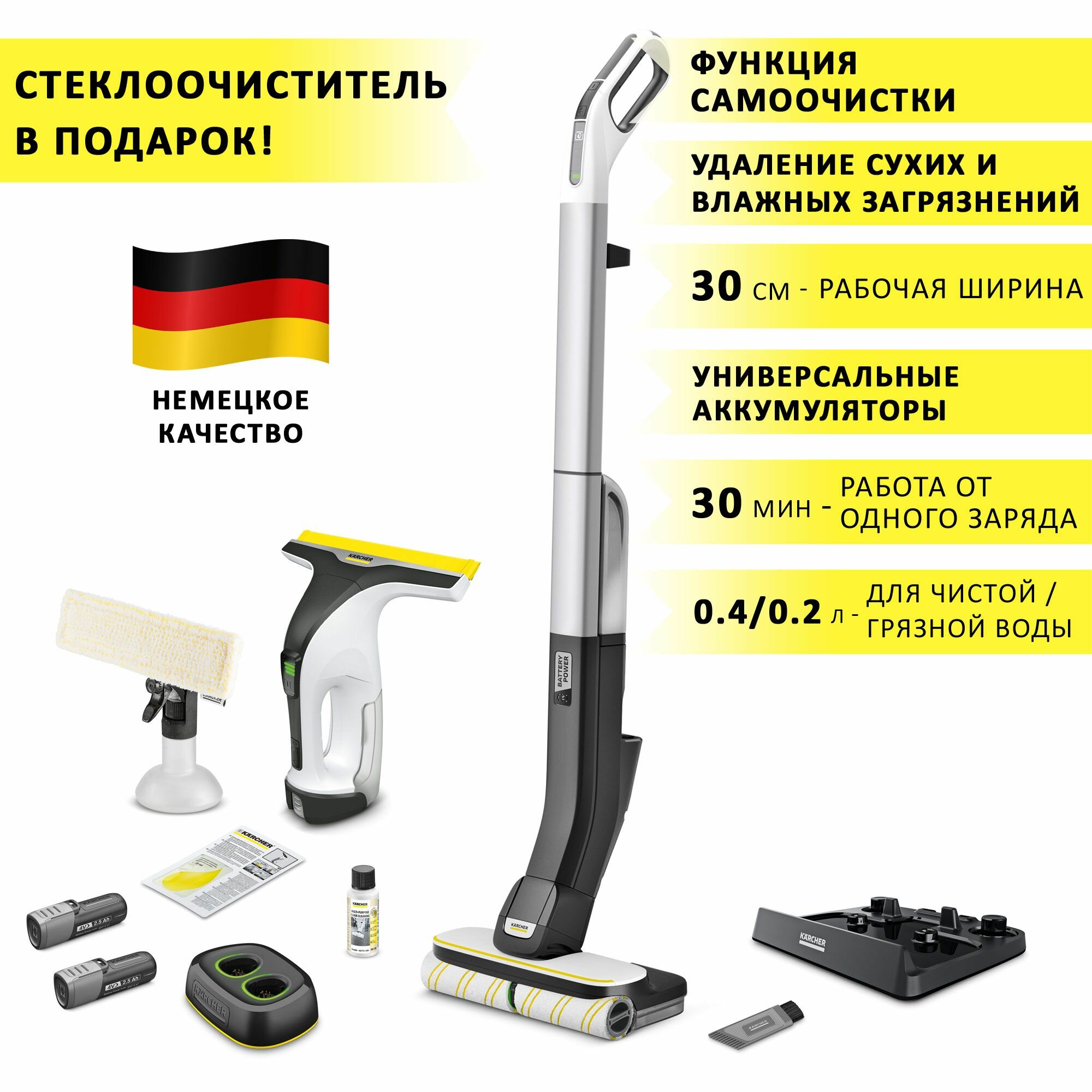 Купить Комплект: аккумуляторный аппарат для влажной уборки пола (электрошвабра) Karcher FC 4-4 Battery Set + мойщик окон Karcher WV 4-4 Plus, 2 аккумулятора