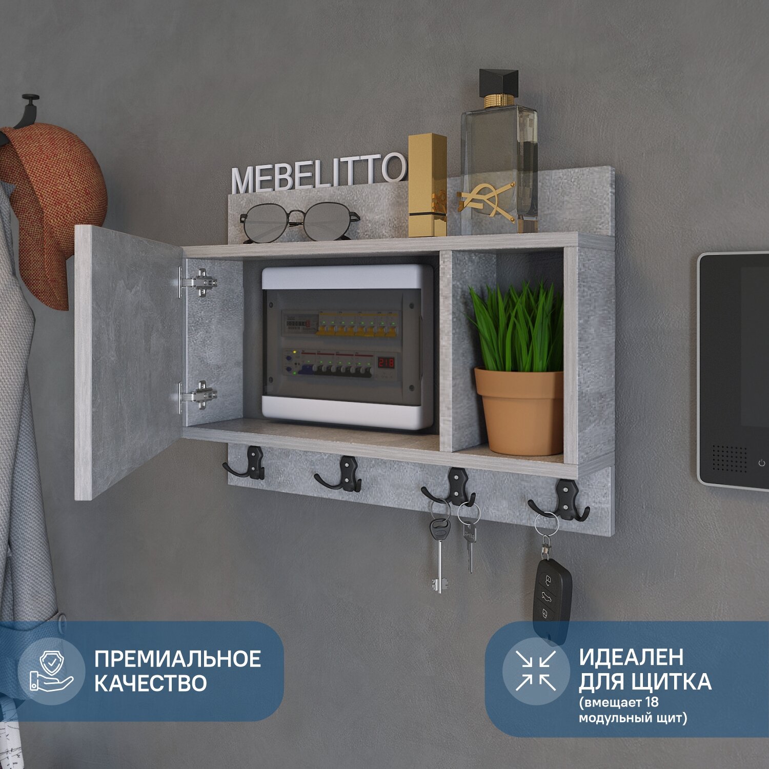 Ключница настенная на электрический щиток Ателье светлый интересное: