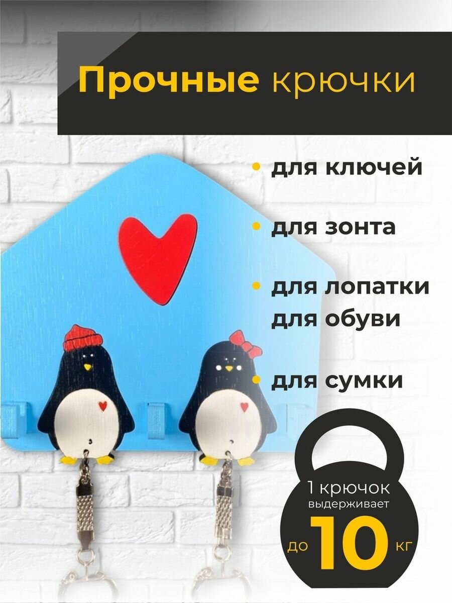 СохранитьКлючница настенная деревянная с брелками "Пингвины" в синем цвете интересное:
