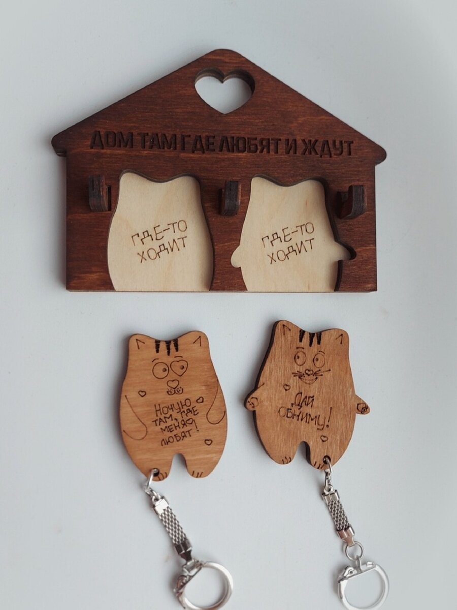 СохранитьКлючница настенная деревянная с брелками "Коты" мокко интересное: