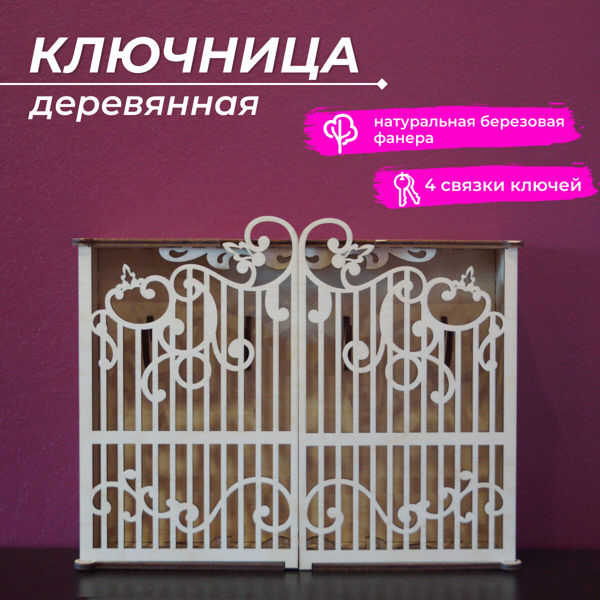 Ключница деревянная с резными дверцами интересное: