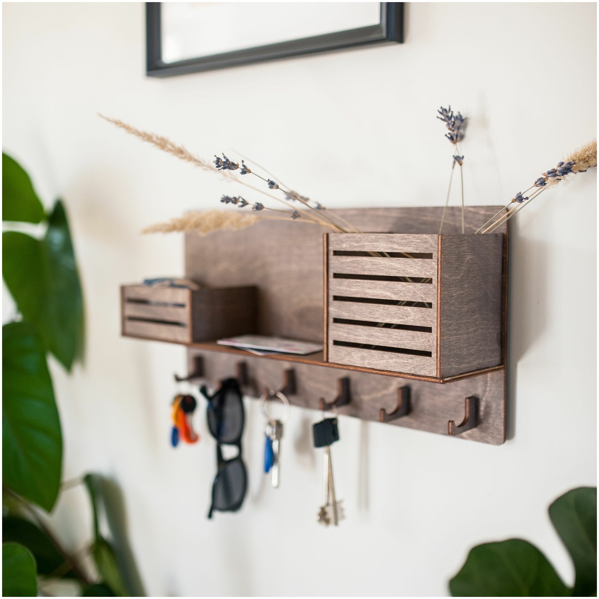 Купить Ключница настенная декоративная большая Bezusoff 38 на 19 см с 6 крючками, полочкой и 2 отделениями. Без надписи