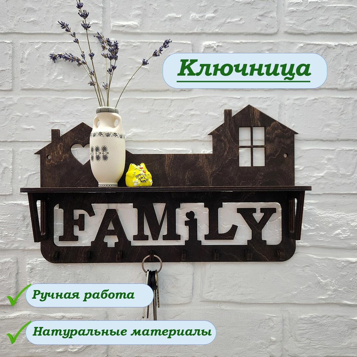 Ключница настенная именная с фамилией "Семья Пьячевых" в прихожую в дом