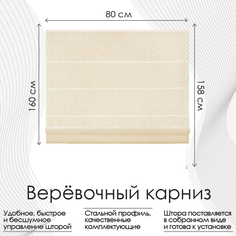 Римская штора, цвет Экрю "Solito", размер 80х160 см, арт.359080160