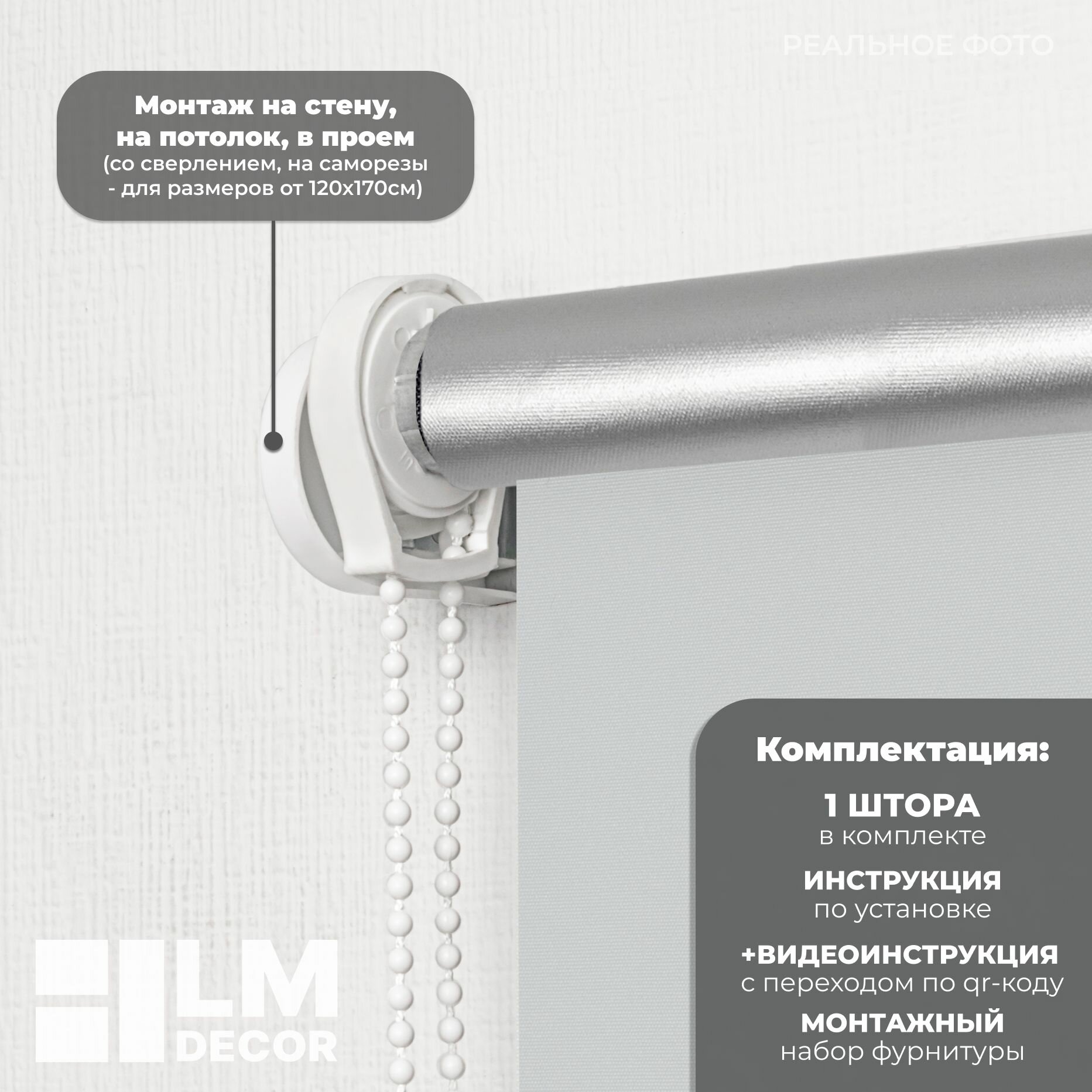 | Комплектация | 1 штора, комплект крепления, инструкция |