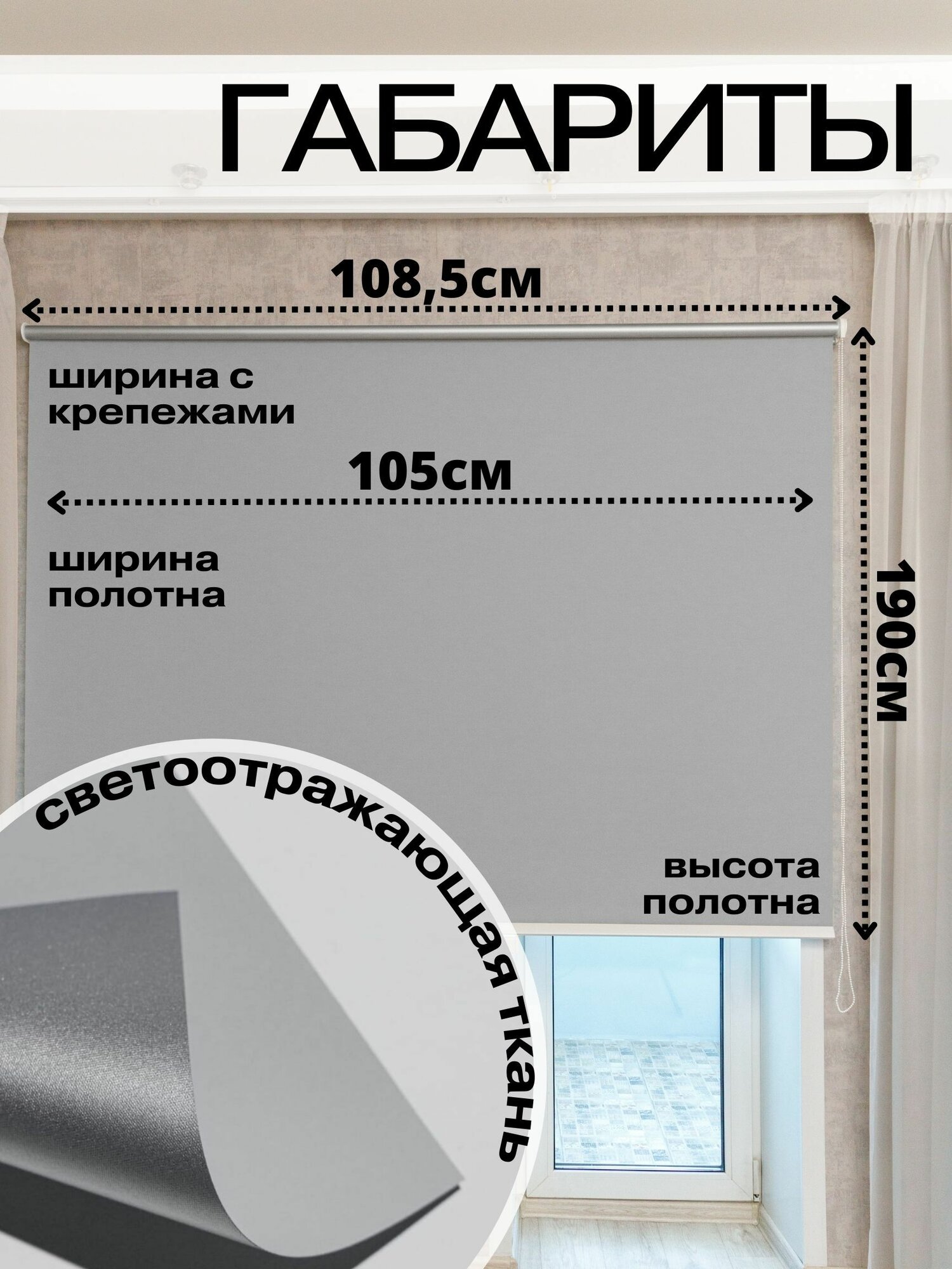 СохранитьРулонные шторы блэкаут 105х190 см серые на окна жалюзи день ночь интересное: