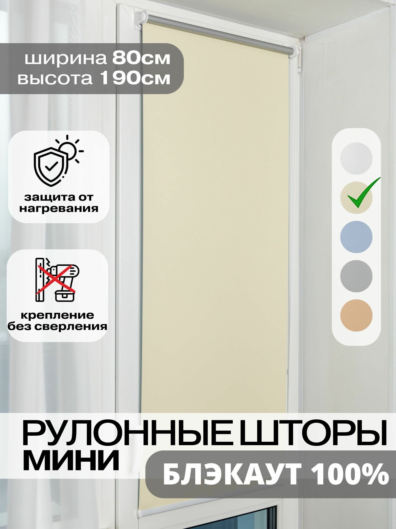 Купить Рулонные шторы блэкаут 80х190 см ванильный на окна жалюзи день ночь