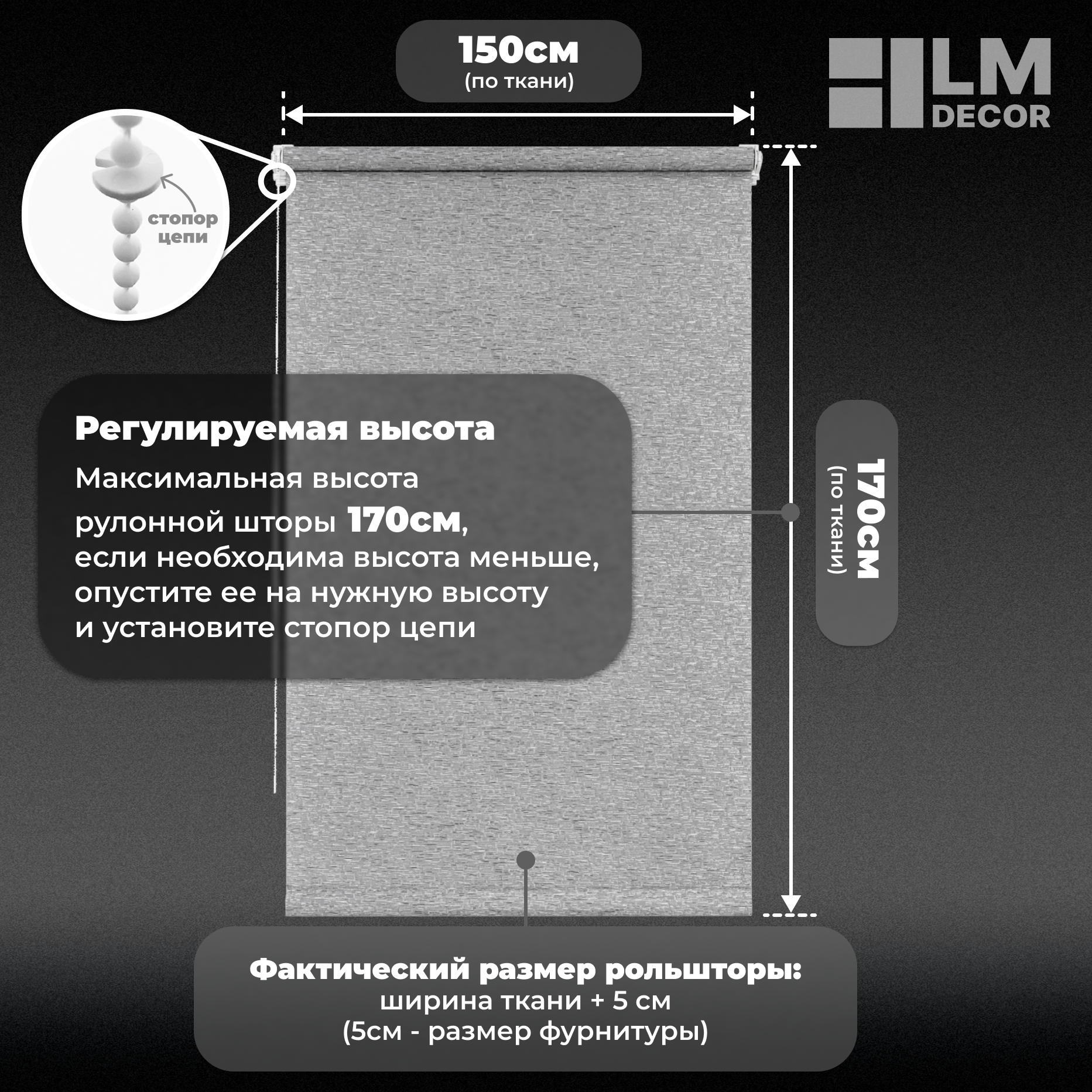 Купить Рулонные шторы LM DECOR "Гранж" 03 Серый 150х170 см