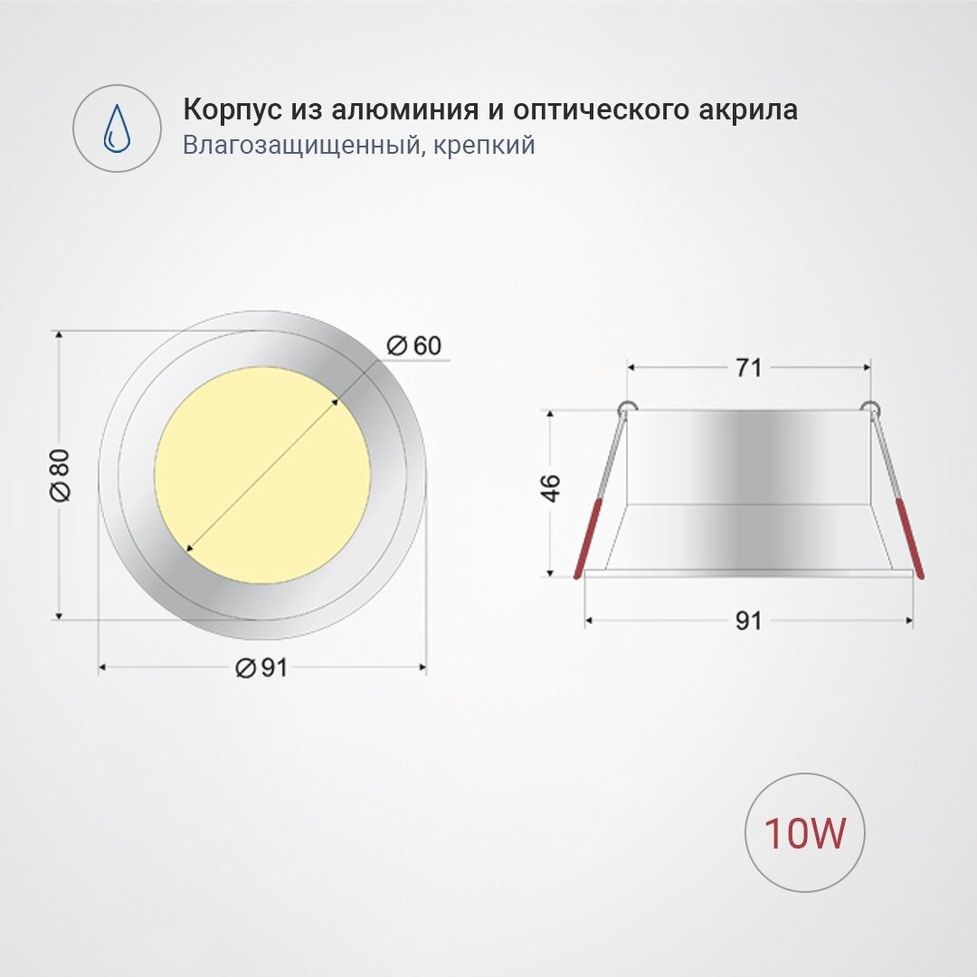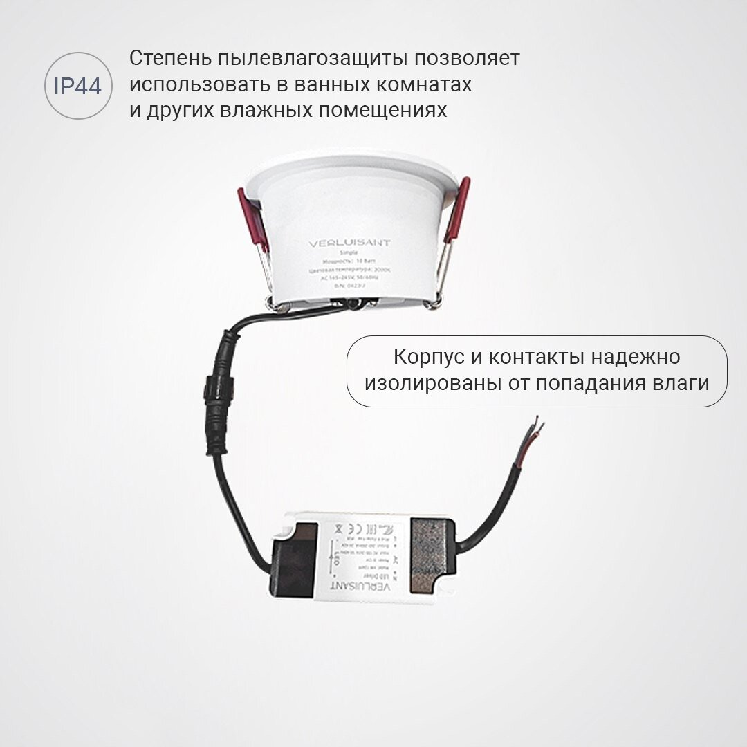 Встраиваемый влагозащищенный светодиодный потолочный светильник точечный экспертного уровня Verluisant Simple интересное: