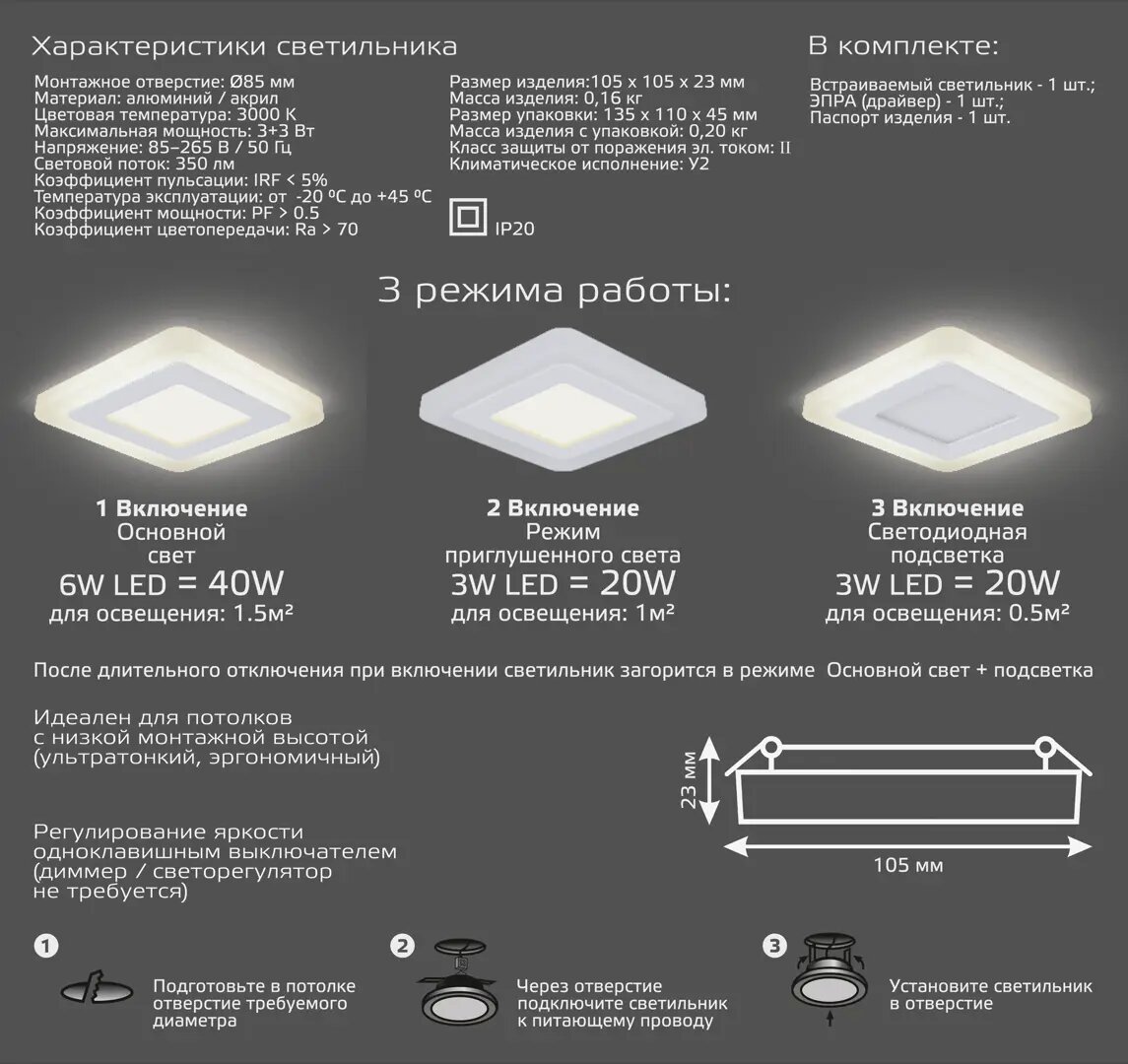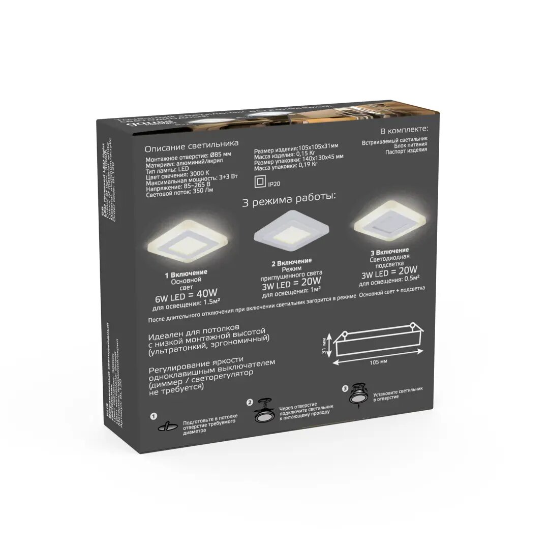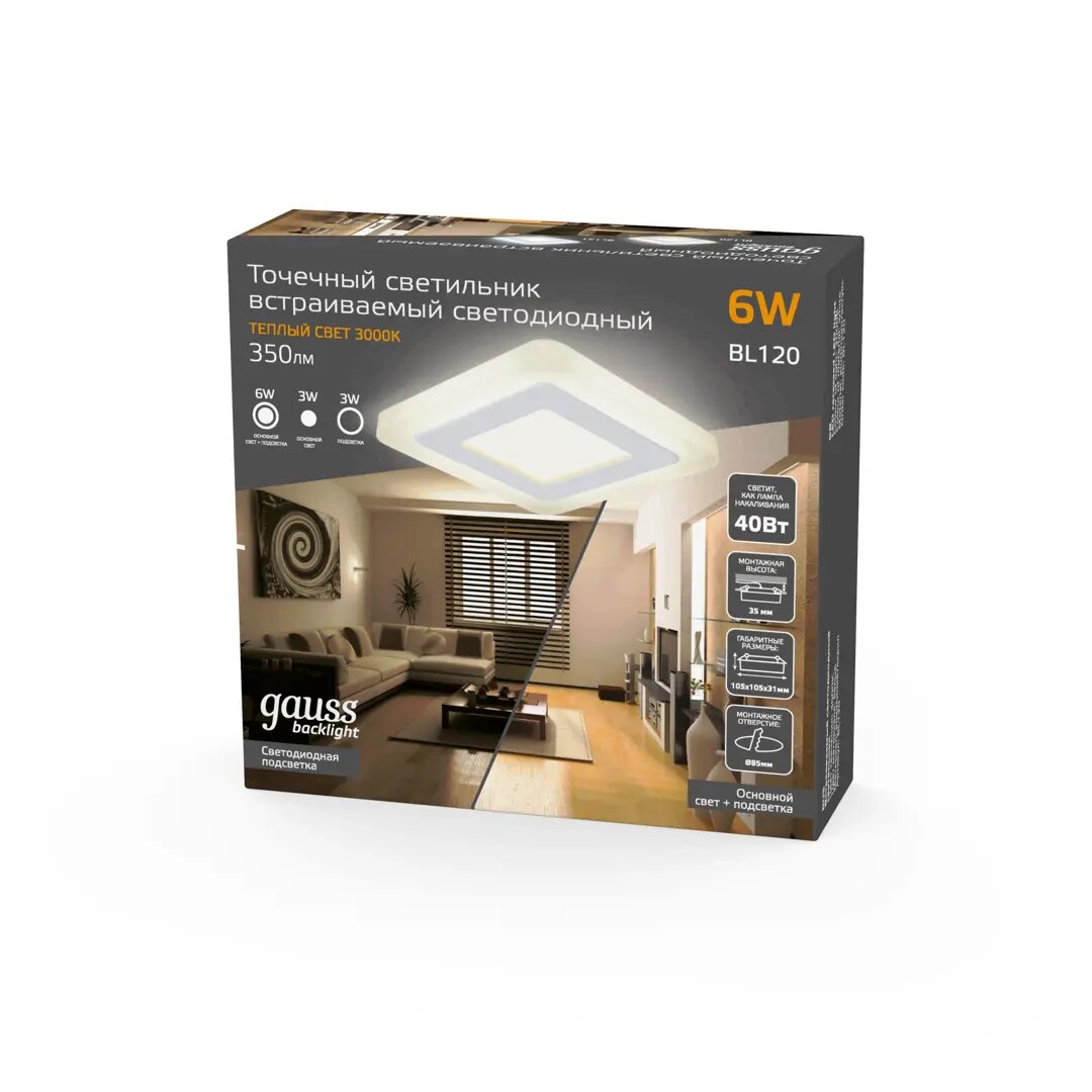 Светильник встраиваемый Gauss Backlight BL120 квадратный 3 и 3 Вт свет тёплый белый интересное: