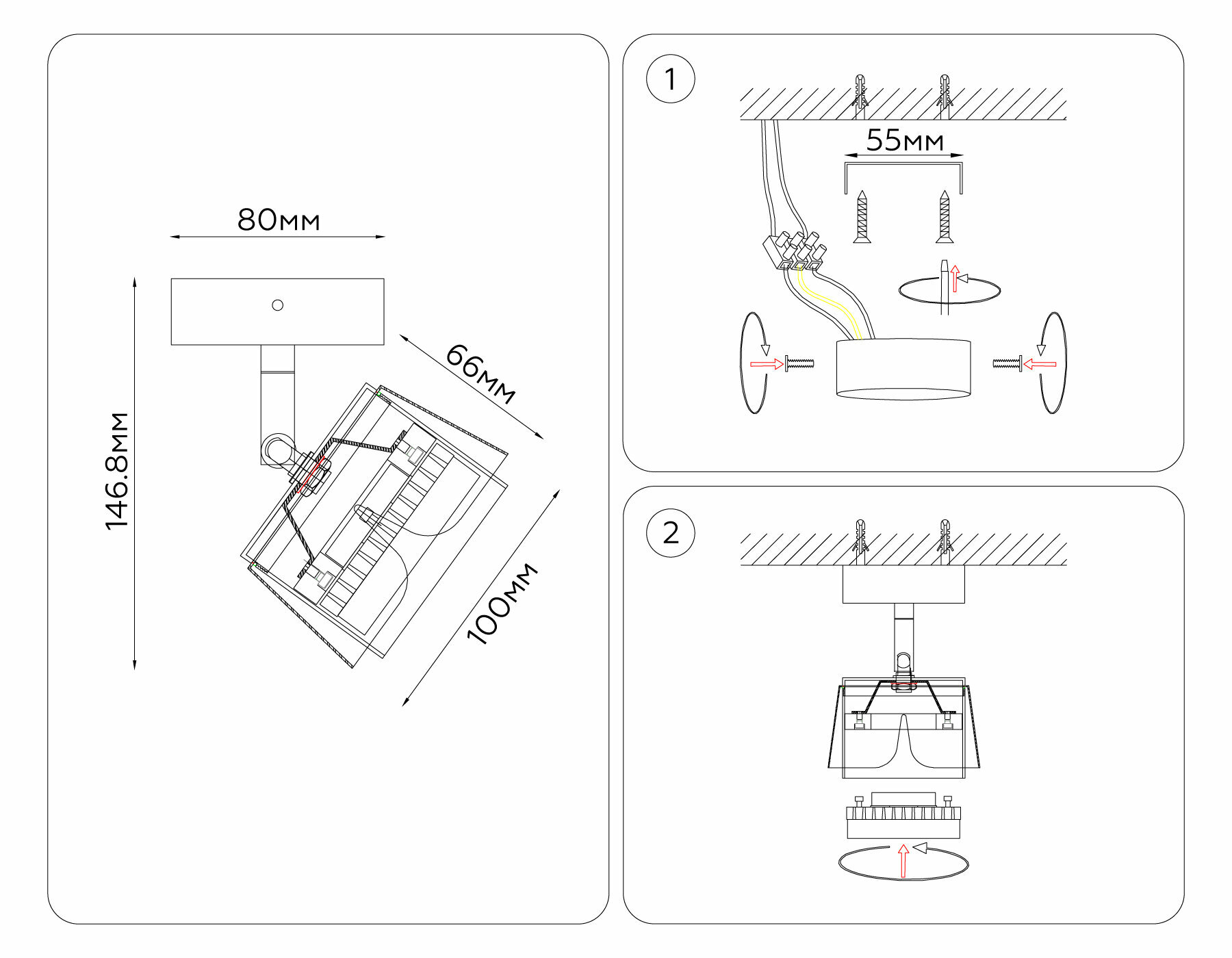 | Направление плафонов | поворотные |