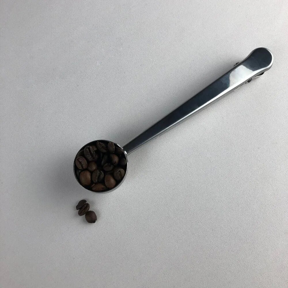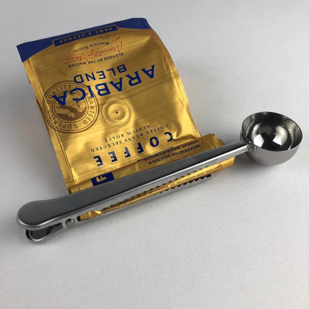 Мерная ложка с зажимом для кофе, чая, сыпучих продуктов / ложка-прищепка / кофейная ложка / зажим для пакетов/серебро интересное: