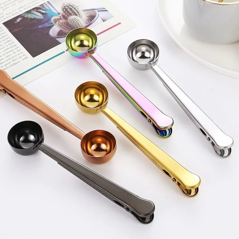 Купить Мерная ложка с зажимом для кофе, чая, сыпучих продуктов / ложка-прищепка / кофейная ложка / зажим для пакетов/серебро