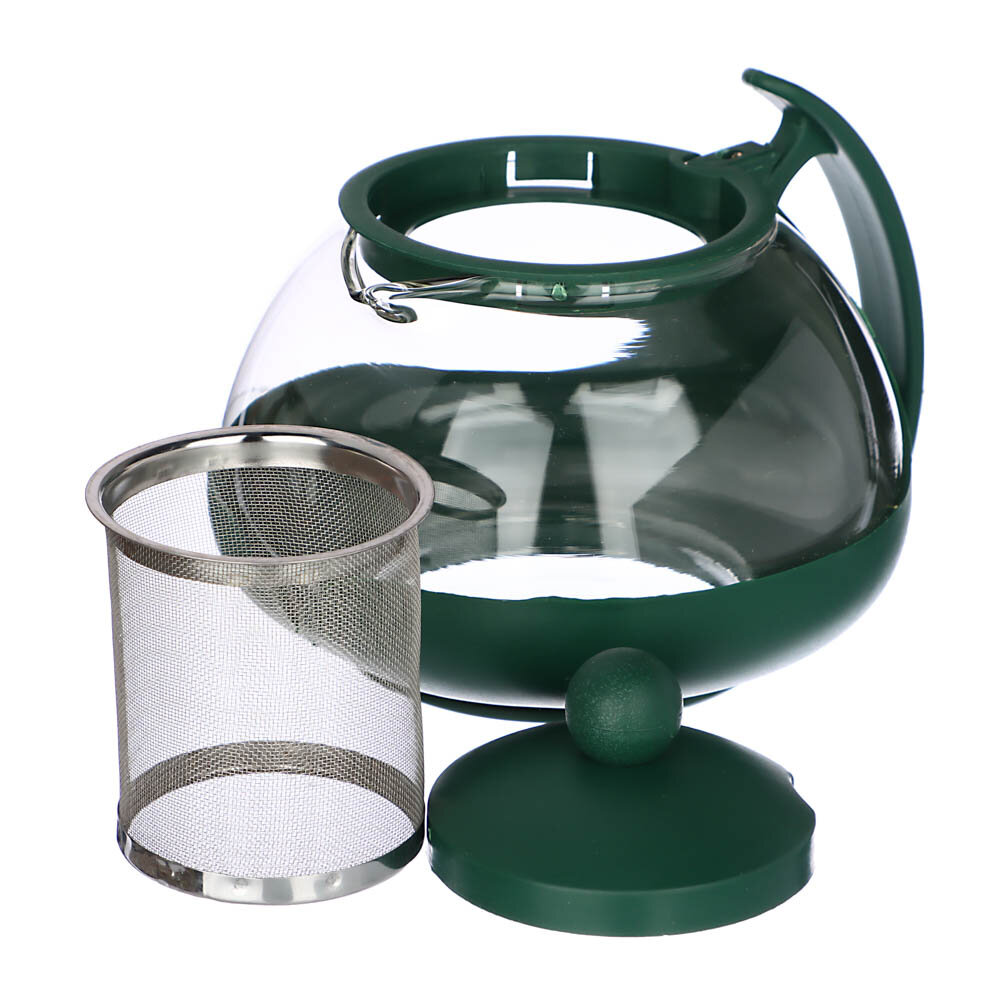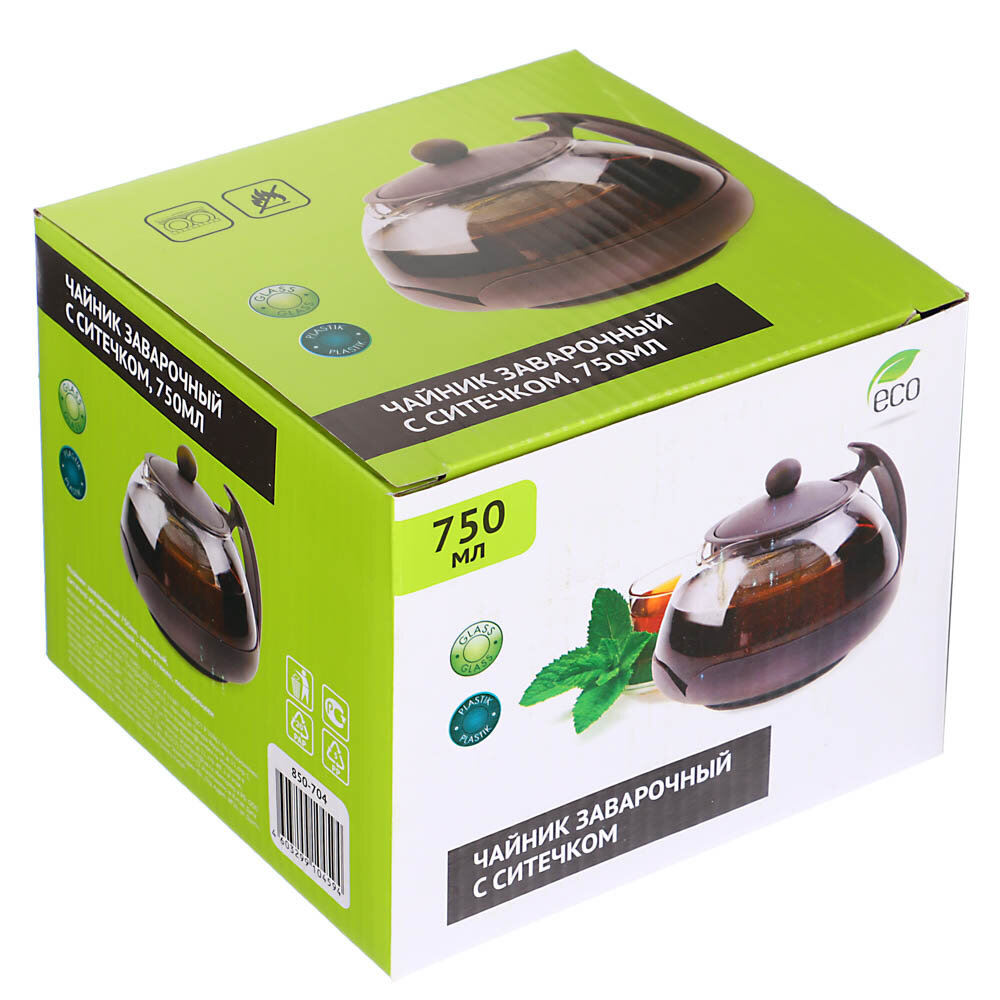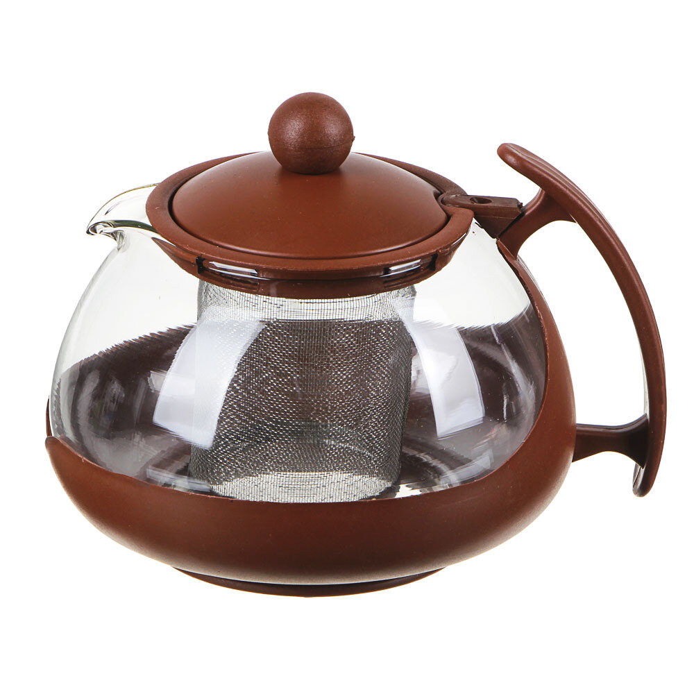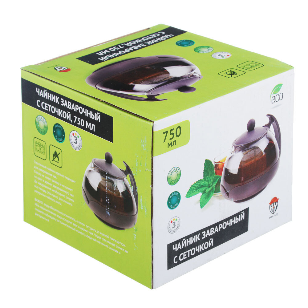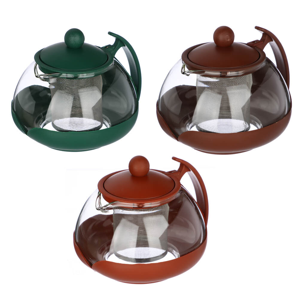 Чайник заварочный 750мл, овальный, ситечко из нержавеющей стали, стекло, полипропилен, 3 цвета