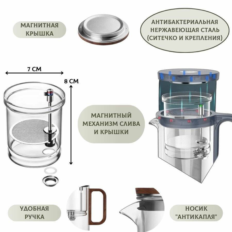 СохранитьЗаварочный чайник Гунфу с фильтром проливной SAMADOYO 500 мл, Стеклянный Чайник с магнитом, Типод с ситечком и кнопкой магнитный, Заварник для горячих напитков стекло интересное: