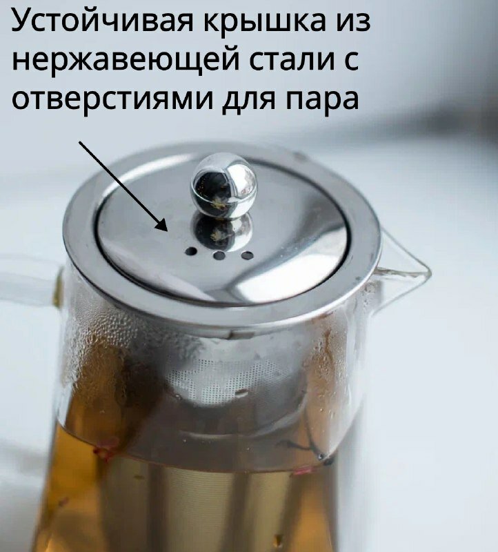 Стеклянный прозрачный заварочный чайник, пирамидальный 950мл, с металлической крышкой и ситечком интересное: