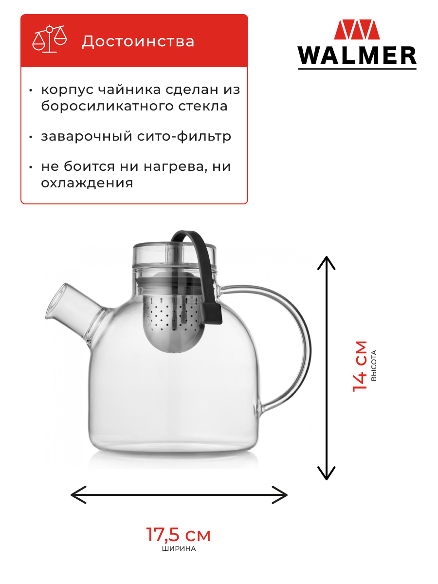 Чайник заварочный стеклянный с сито-фильтром Walmer Future, 800 мл, цвет прозрачный интересное: