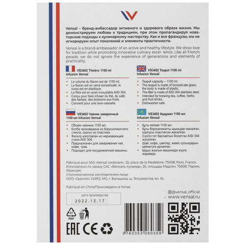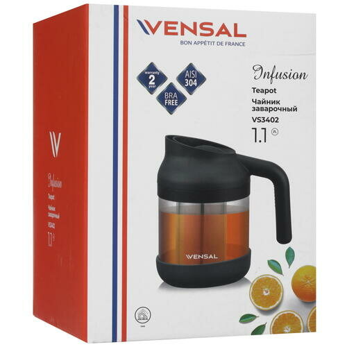 Купить Заварочный чайник c металлическим ситом, 1100 мл Vensal VS3402