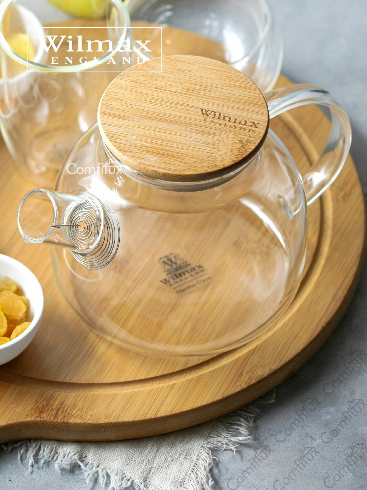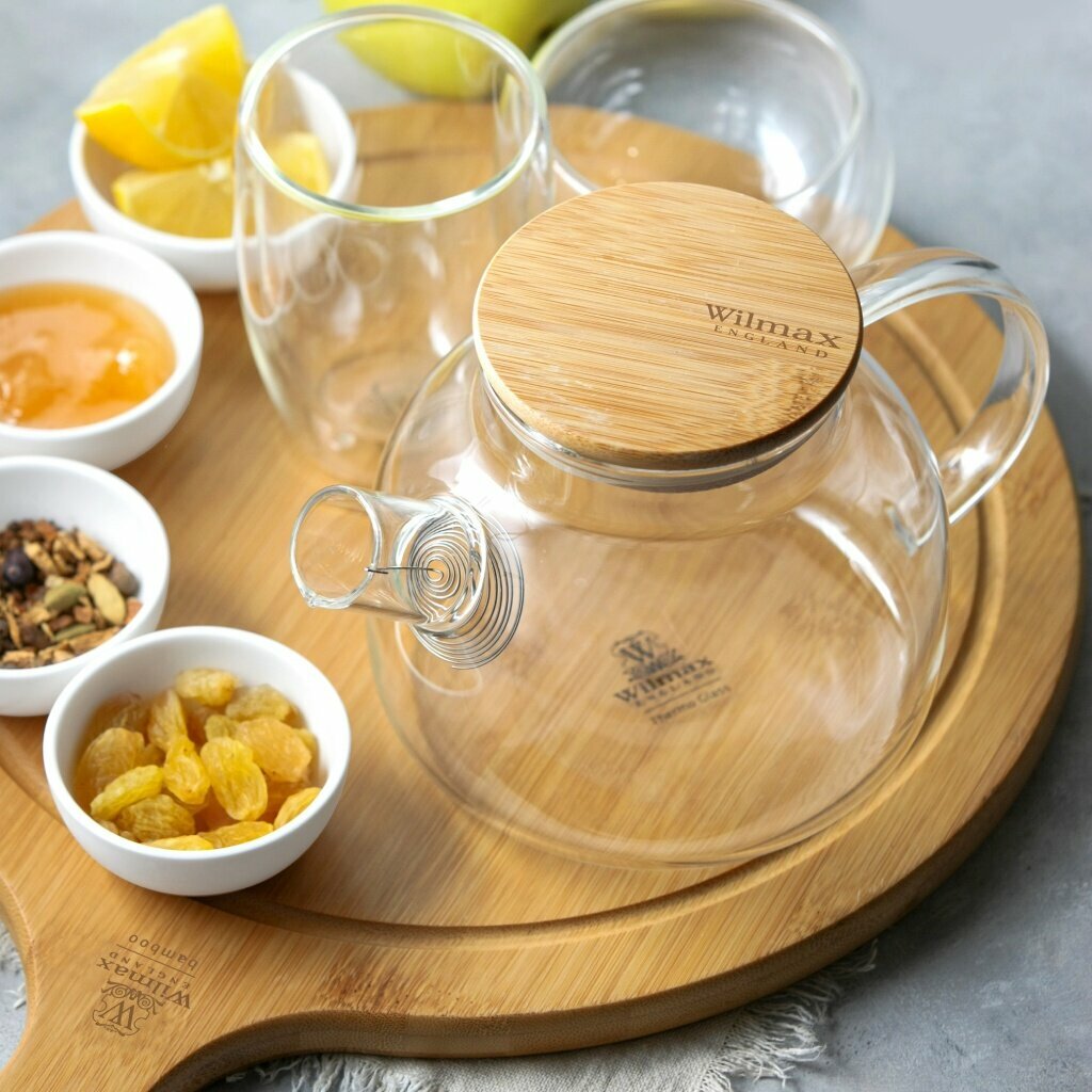Купить Чайник заварочный WILMAX стеклянный с фильтром и с бамбуковой крышкой, 950 мл