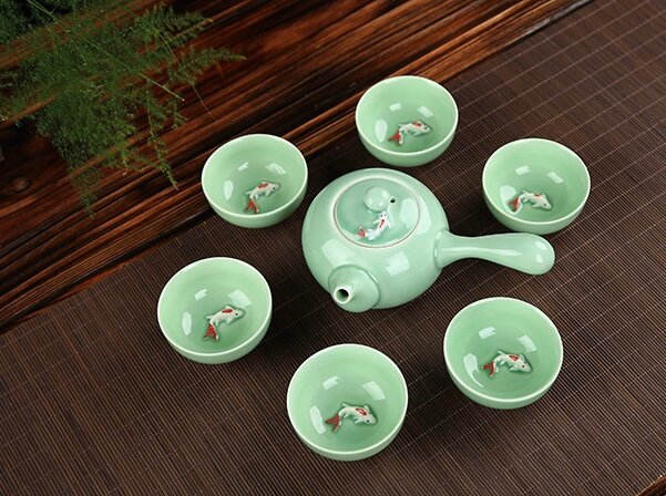 заварочный чайник Кюсю c боковой ручкой для чайной церемонии с рыбкой Кои интересное: