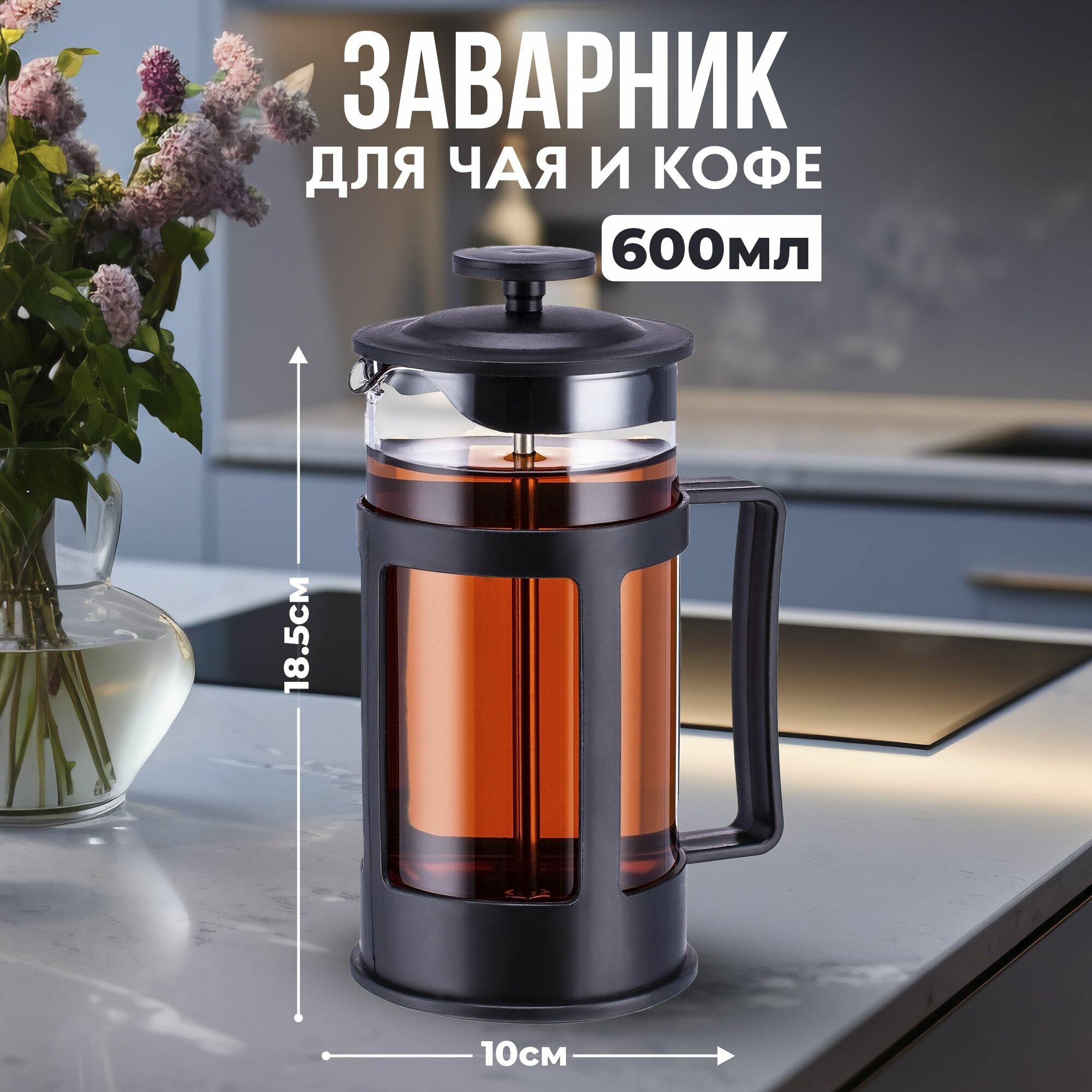 Стеклянный френч-пресс 600 мл , заварочный чайник со стеклянной колбой и прессом