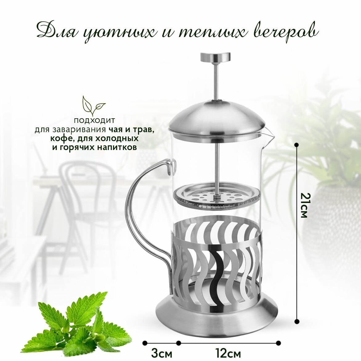 Стеклянный френч-пресс 350 мл, заварочный чайник со стеклянной колбой и прессом