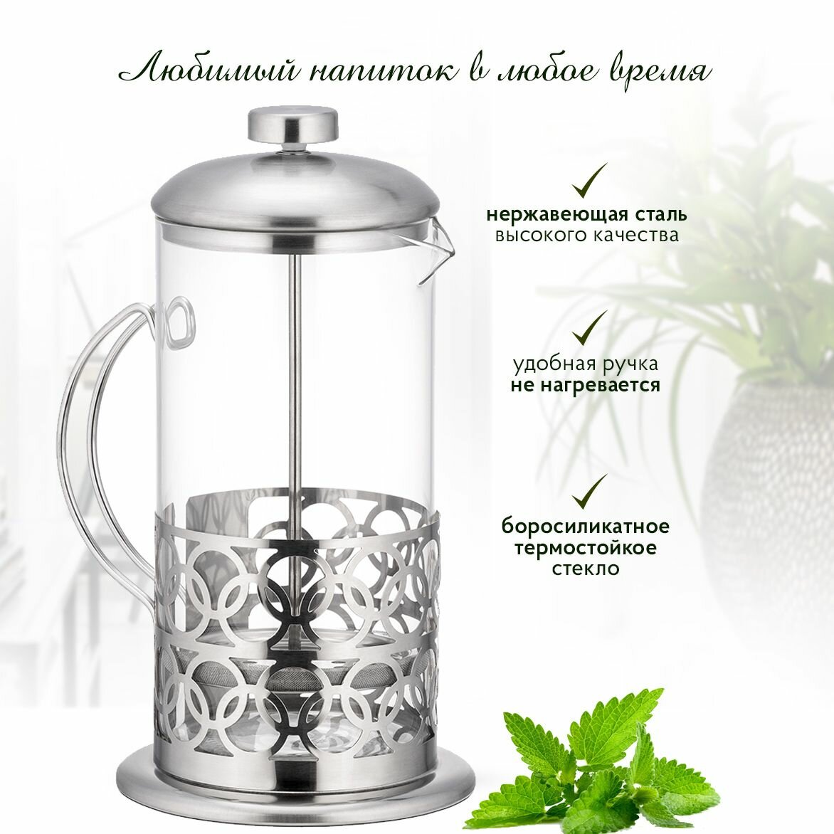 Стеклянный френч-пресс 350 мл, заварочный чайник со стеклянной колбой и прессом
