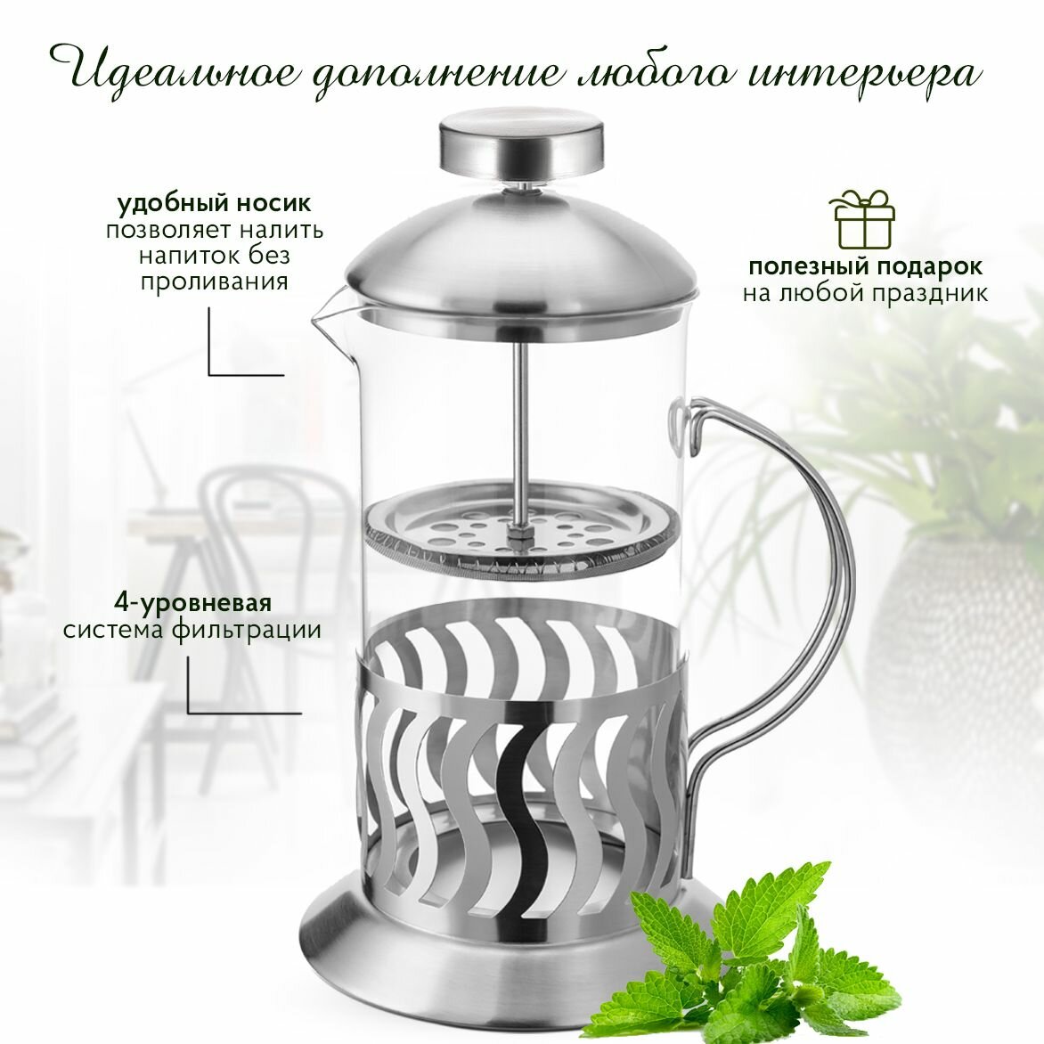 Стеклянный френч-пресс 350 мл, заварочный чайник со стеклянной колбой и прессом
