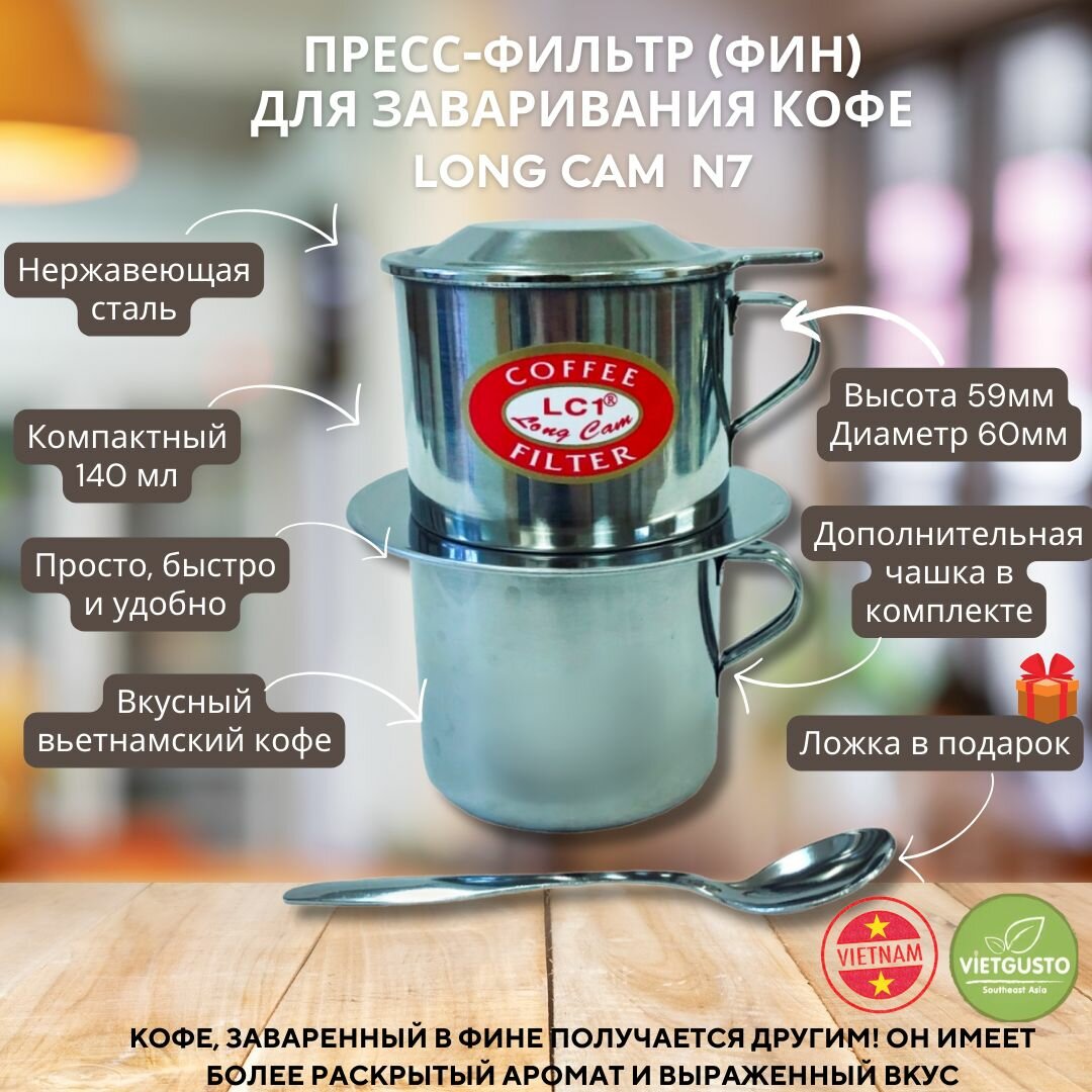 Френч-пресс с чашкой и ложкой, пресс-фильтр, фин для приготовления кофе LONG CAM N7, 140мл интересное: