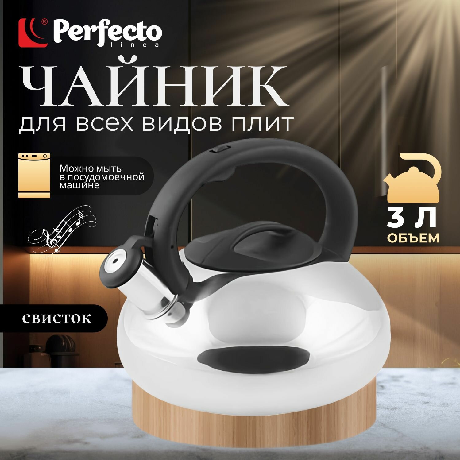 Чайник со свистком PERFECTO LINEA Ufo общий объем 3 л, серебристый металлик (52-129018) интересное: