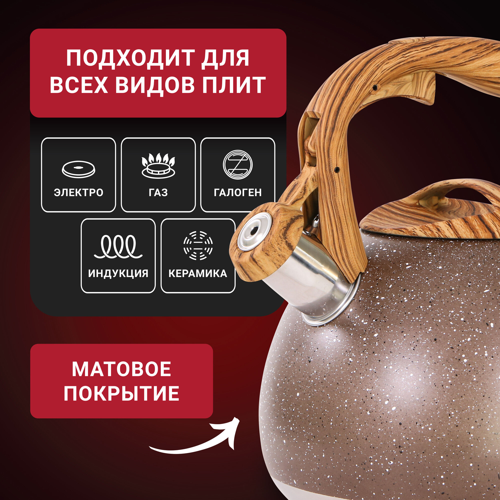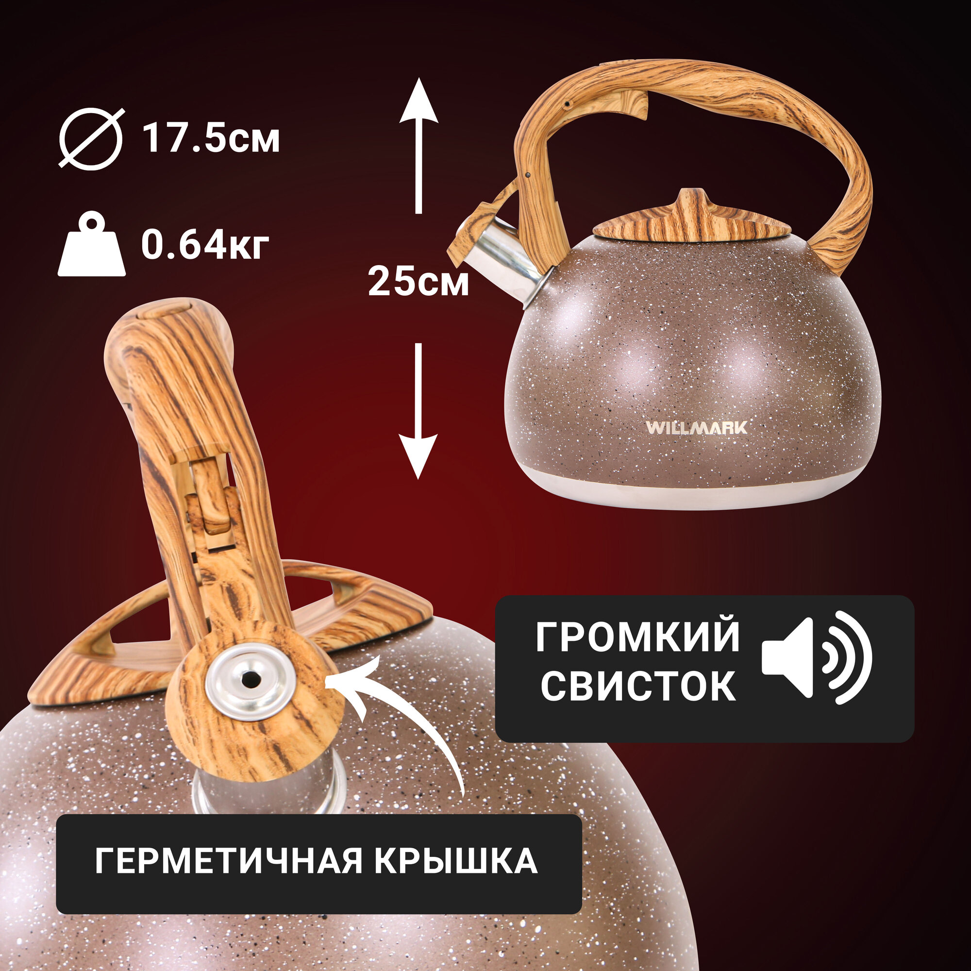 Чайник WILLMARK WTK-4022SS Коричневый 3л, со свистком