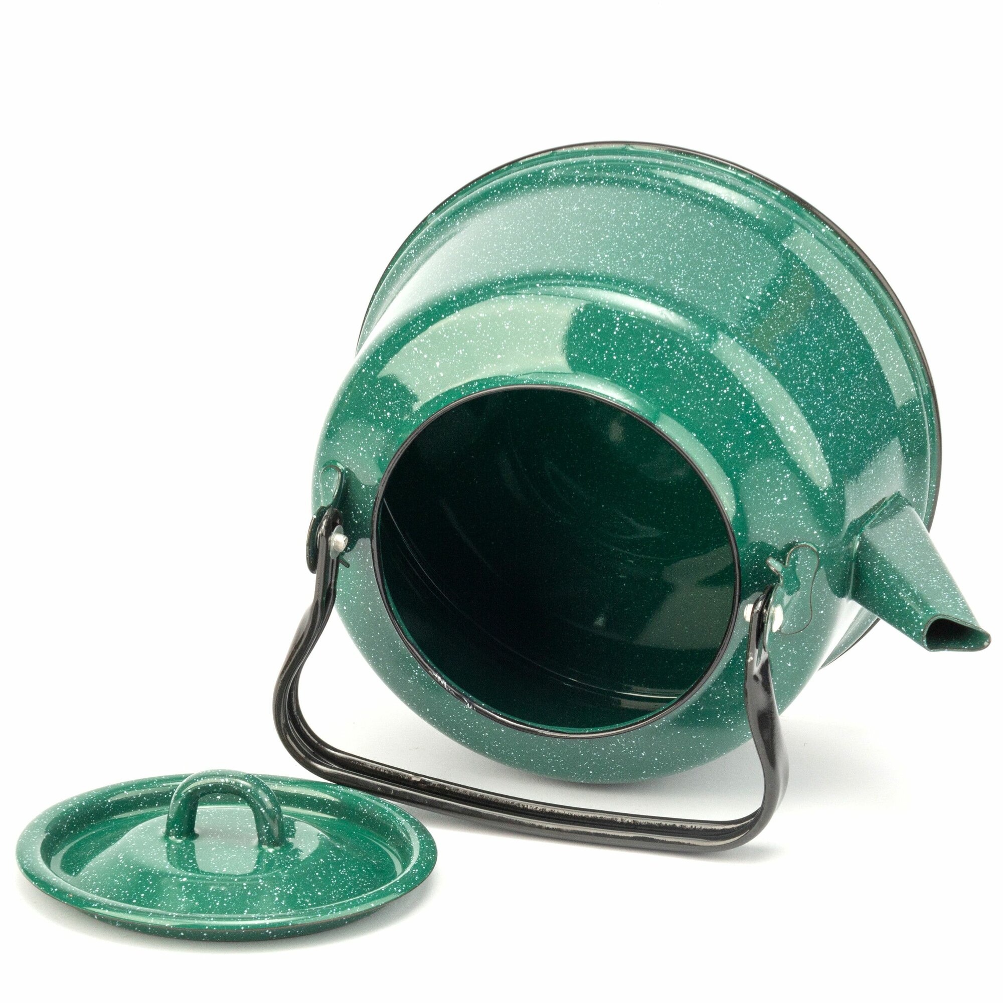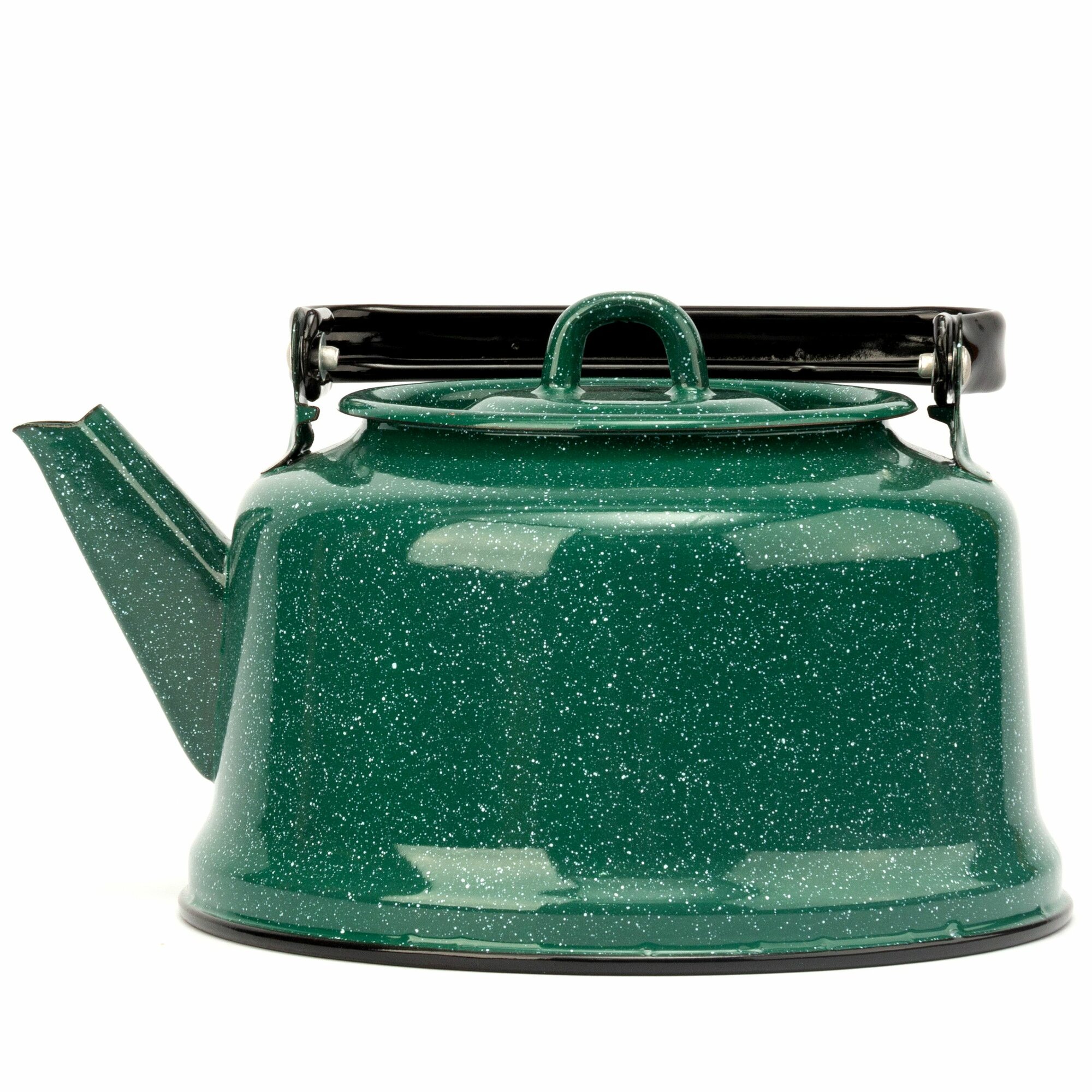 Купить Чайник эмалированный 3,5 л без рисунка, закатанное дно, зеленый рябчик, для плиты и открытого огня