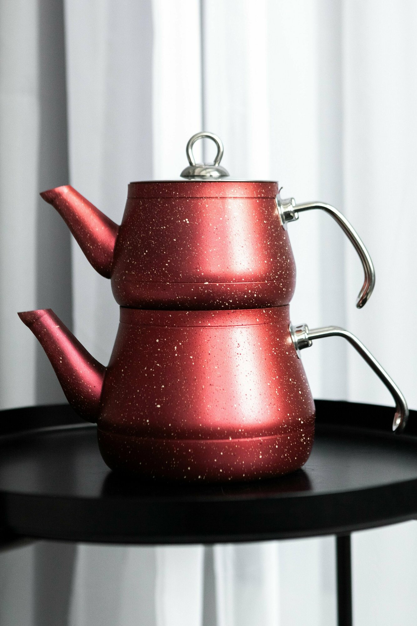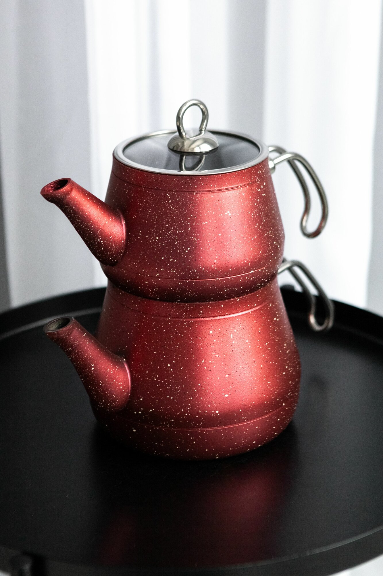Двойной чайник красный гранит с металлической ручкой 2л 1л интересное: