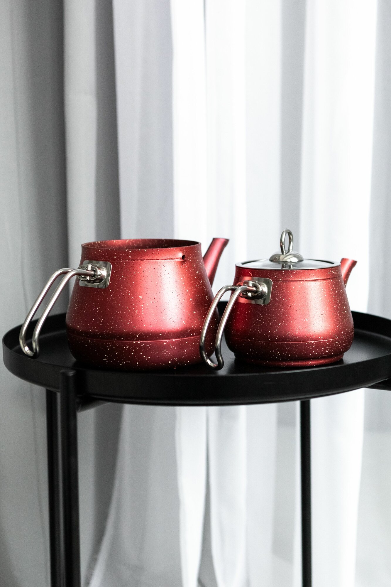 Купить Двойной чайник красный гранит с металлической ручкой 2л 1л
