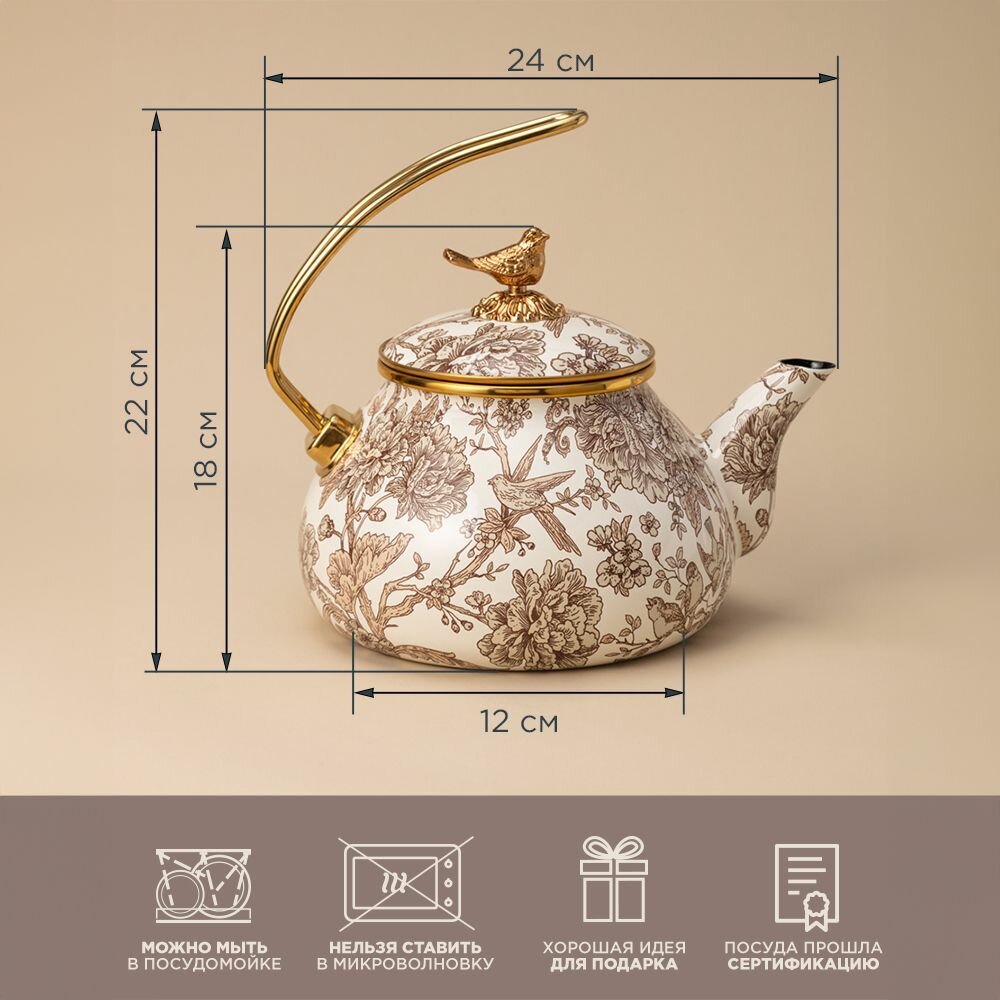 Чайник 950-078 эмалированный agness, серия royal garden 2,2 л интересное: