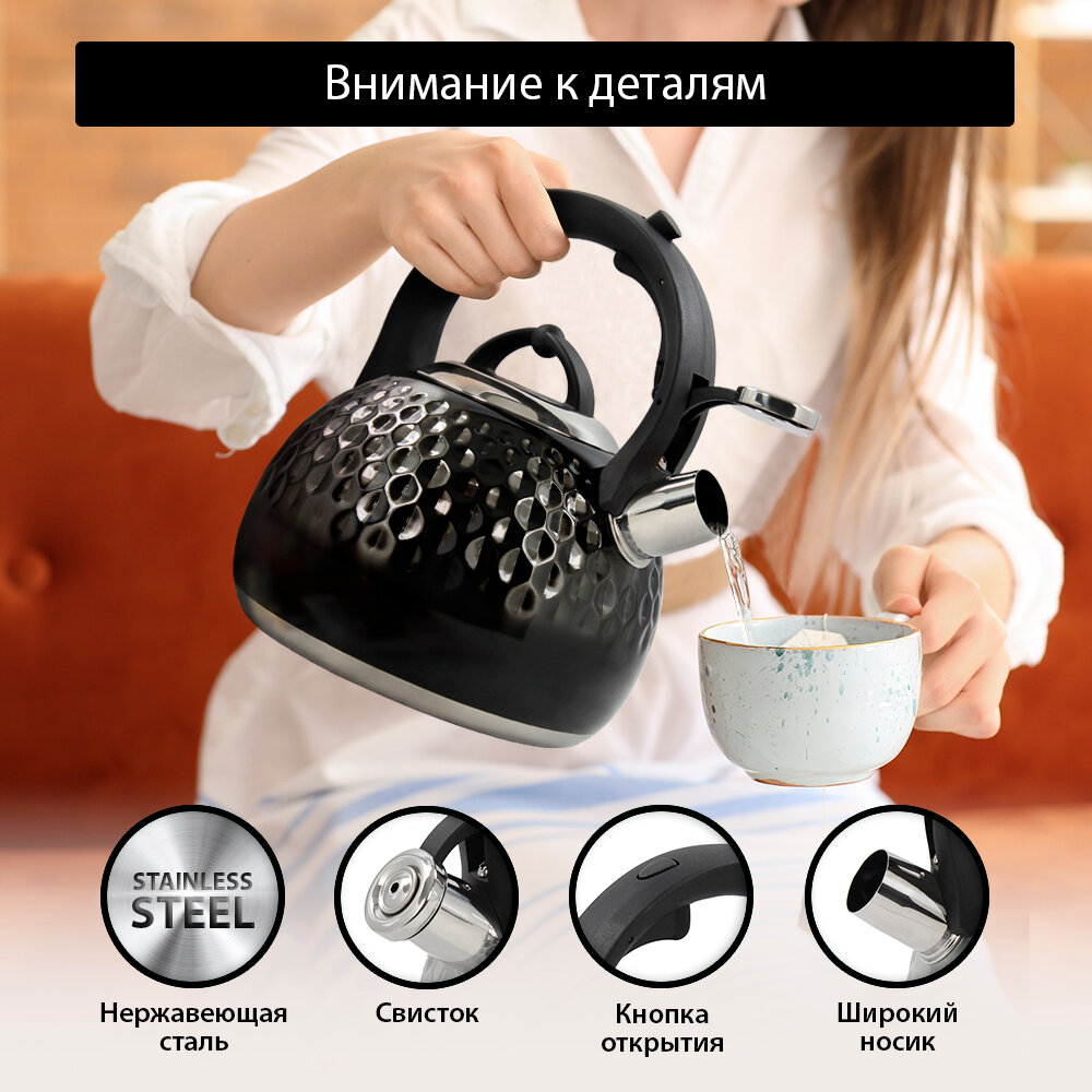 Чайник металлический со свистком KATANA KT-KE3000B черный глянец интересное: