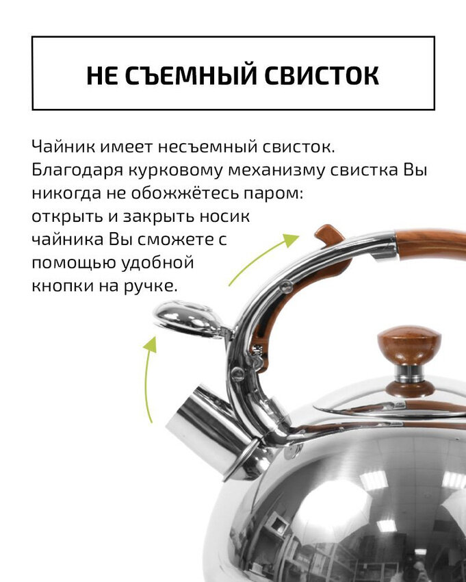 Чайник 3л из нержавеющей стали TIMA индукция со свистком ручка Soft-touch WTK178WH интересное: