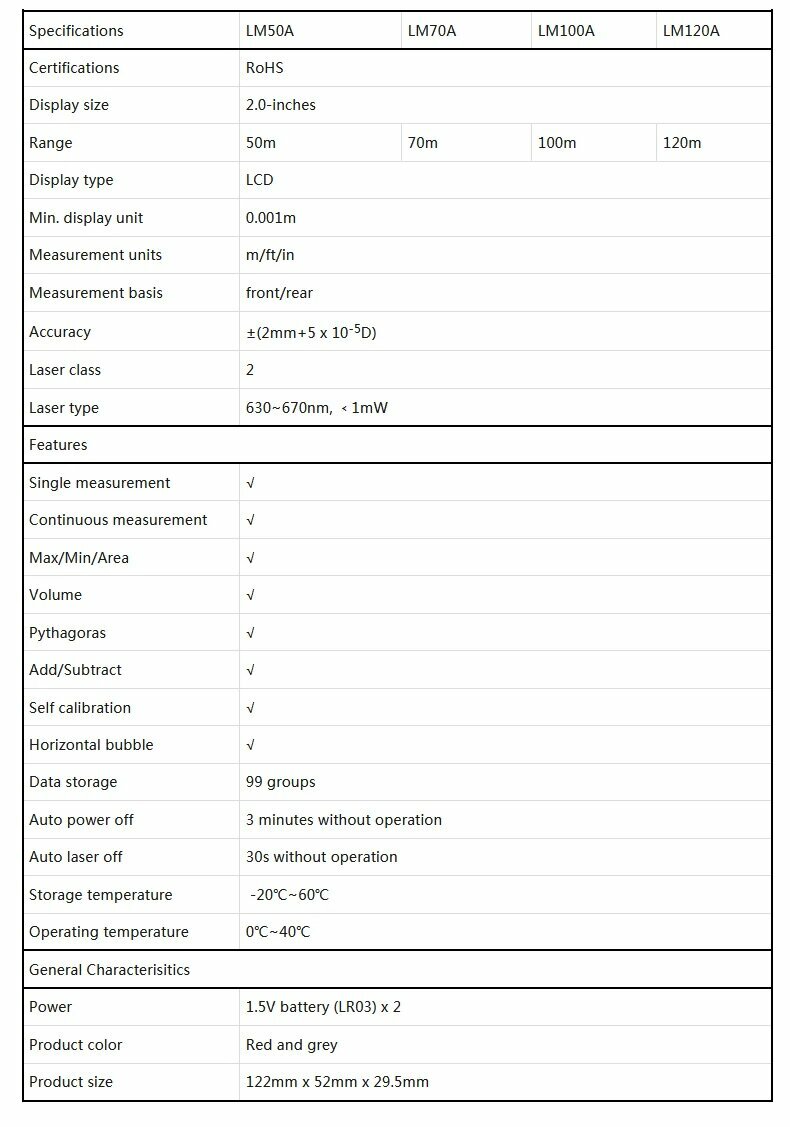 Ниже Вы можете прочитать отзывы на Лазерный дальномер LM50A, LM70A, LM100A, LM120A, LM100A, ознакомится с подробными характеристиками, посмотреть интересные обзоры и фотографии на Лазерный дальномер LM50A, LM70A, LM100A, LM120A, LM100A.