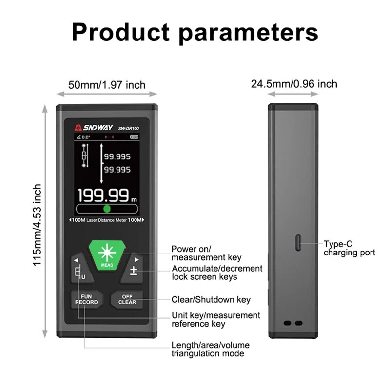 Лазерный дальномер SNDWAY SW-DG60 DG100 2-сторонний, SW-DG60 интересное: