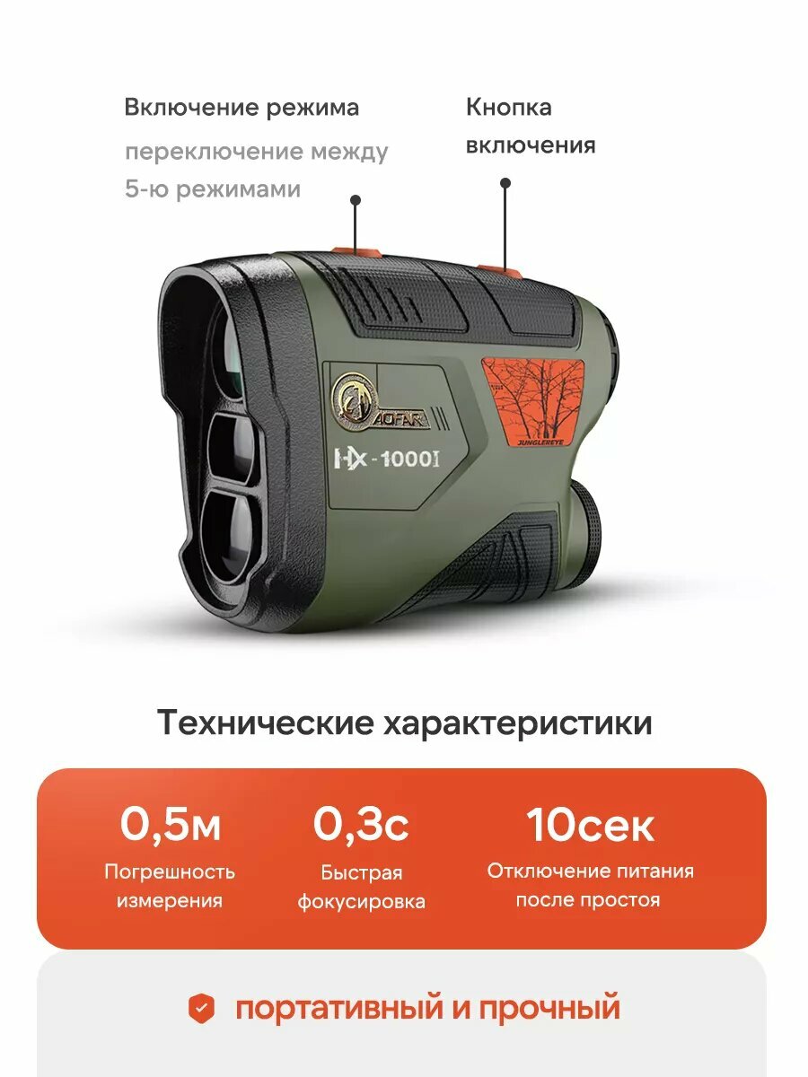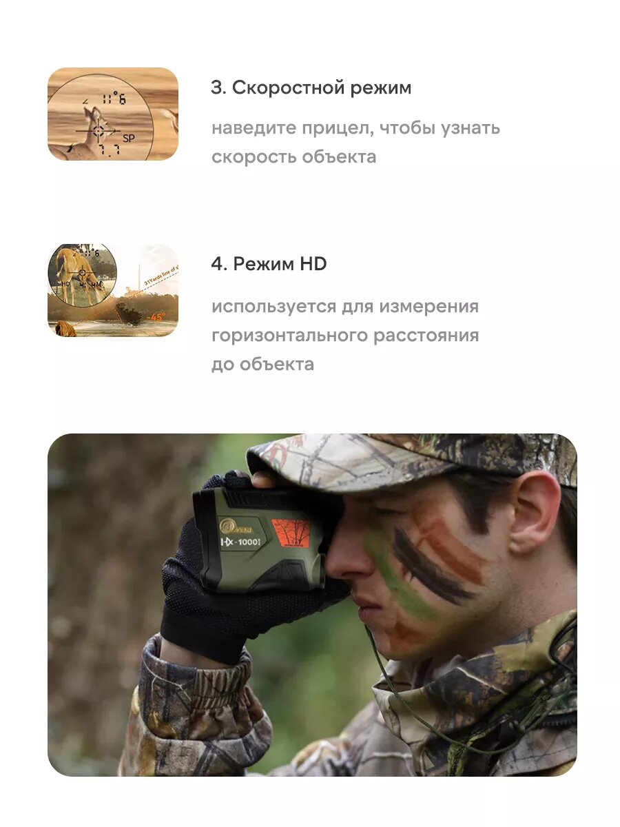 | Функции и особенности | для охоты, режим непрерывного измерения |